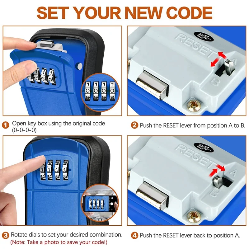[RELIABLE 4-DIGIT COMBINATION] - uses 4-digit combination to ensure robust protection. The 4-dial combination key safe offers up to 10000 different combinations, is much more than 3-digit models, is also harder to crack. It is easy to redefine the desired combination at any time, wihic makes your valuables safer. (Note: Take a photo/write it down to save your code!)