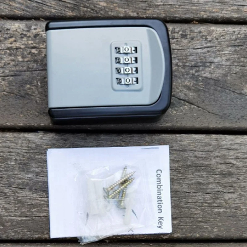 Key Lock Box Wall Mounted Zinc Alloy Key Safe Box Weatherproof 4 Digit Combination Key Storage Lock Box Indoor Outdoor