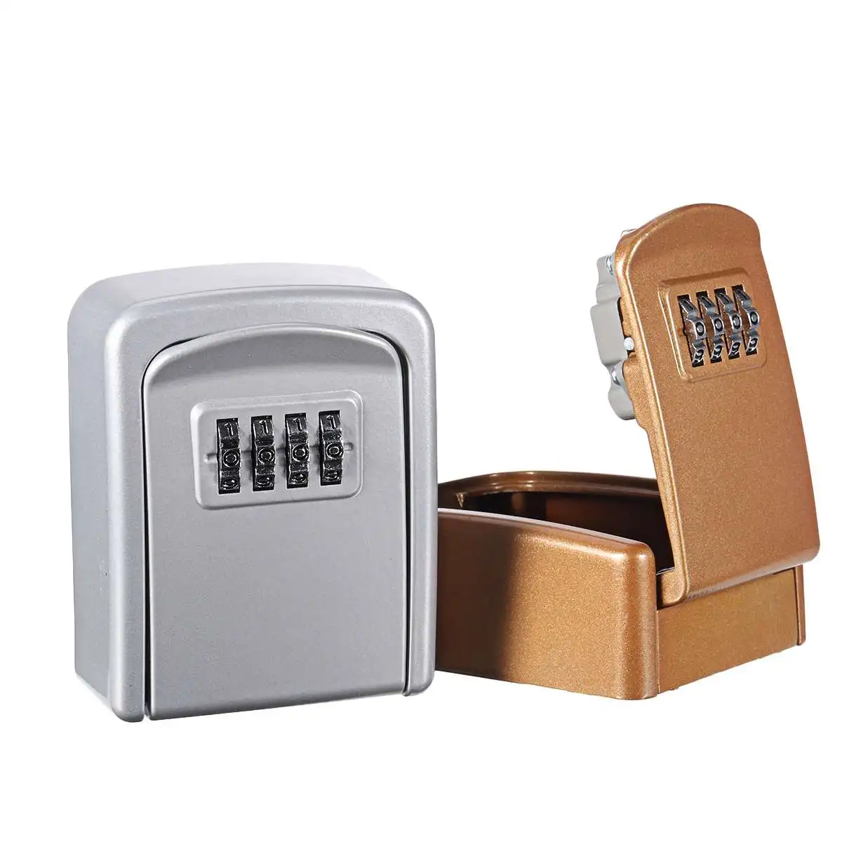 Key Lock Box Wall Mounted Zinc Alloy Key Safe Box Weatherproof 4 Digit Combination Key Storage Security Lock Box Indoor Outdoor