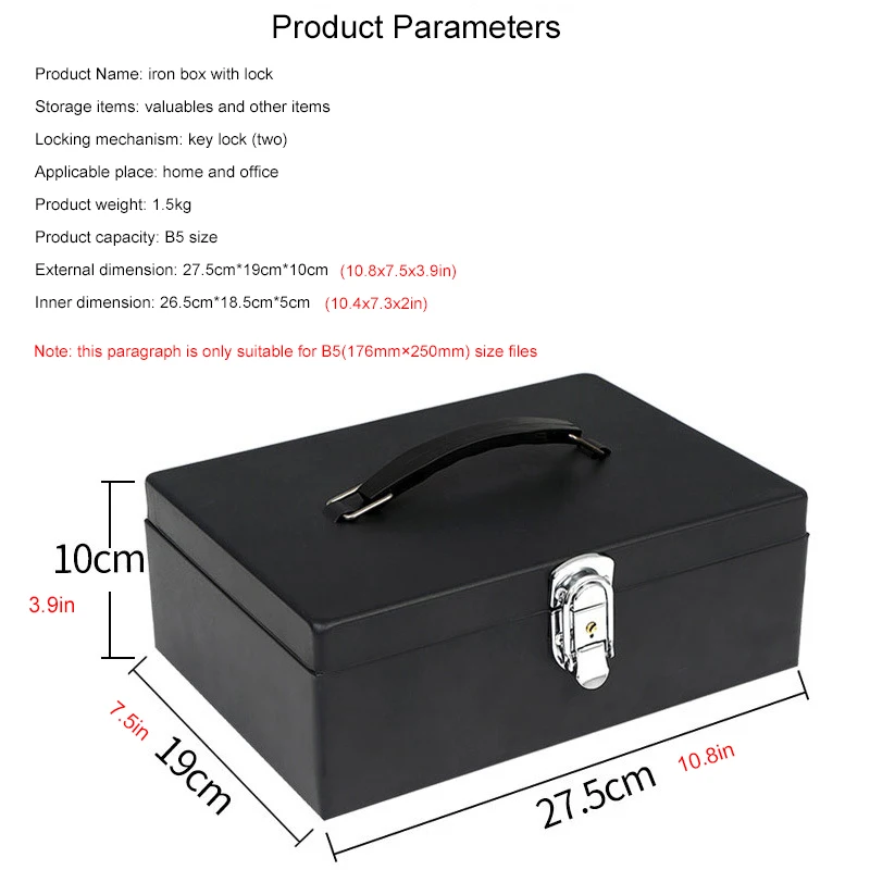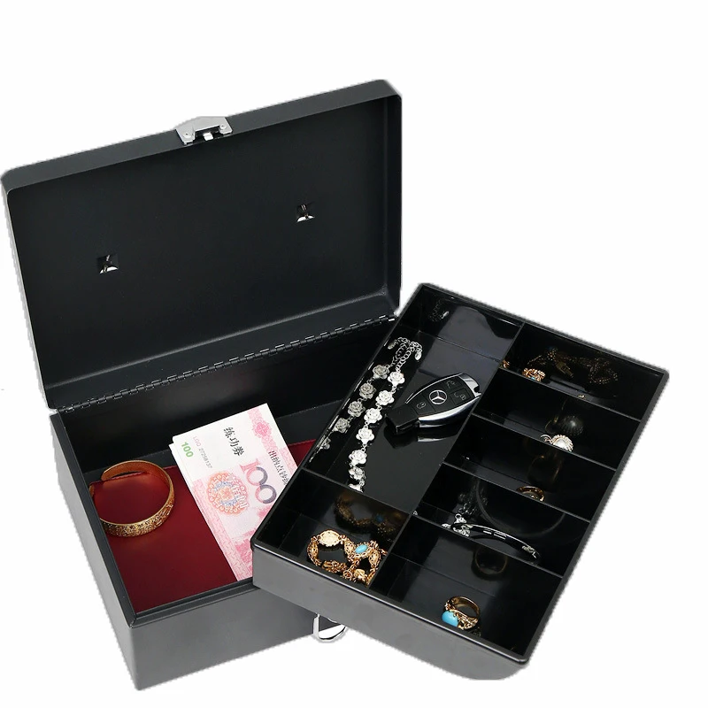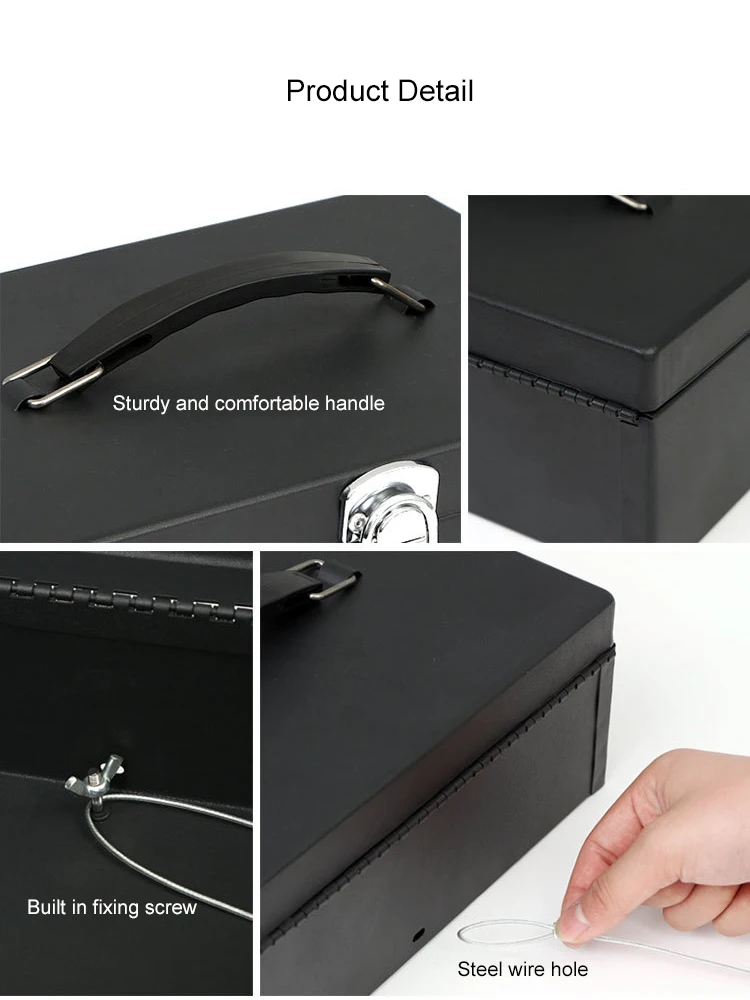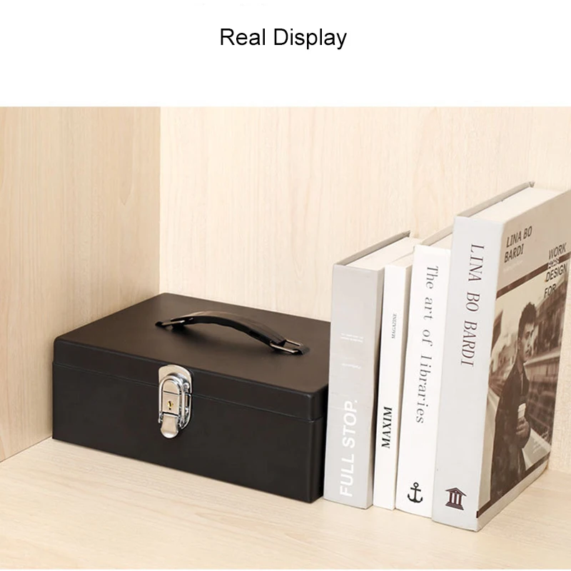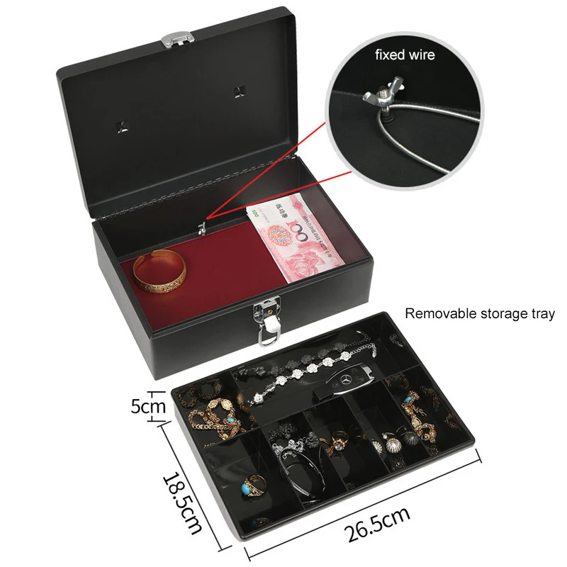 Key Lock Security Safe Metal Cash Box with Banknotes Coins Classified Guid Office Home Jewelry Valuables Documents Storage Box