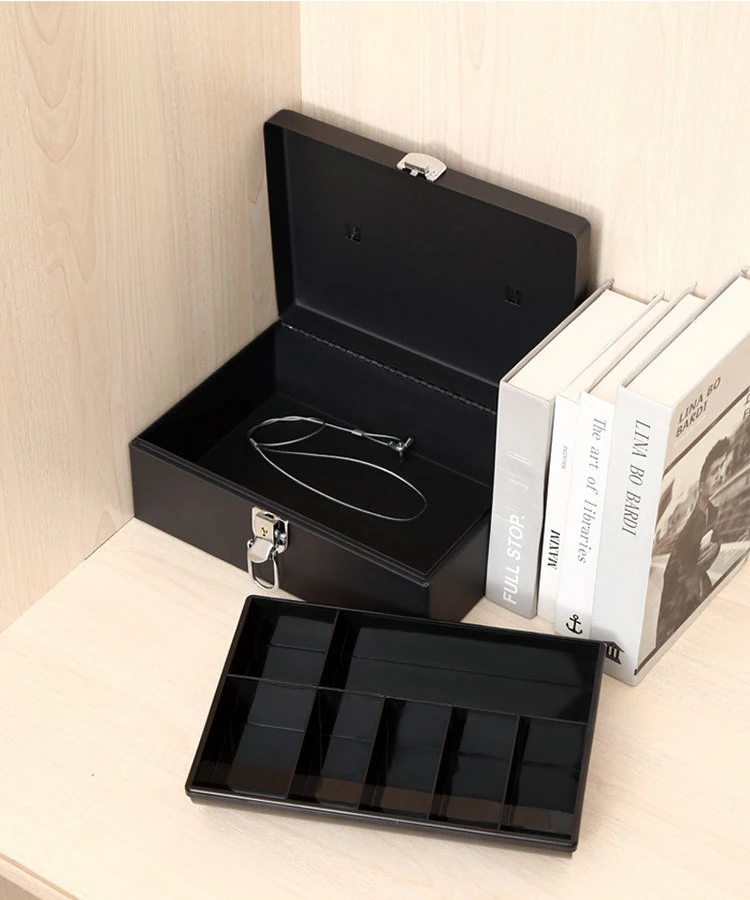 Key Lock Security Safe Metal Cash Box with Banknotes Coins Classified Guid Office Home Jewelry Valuables Documents Organizer