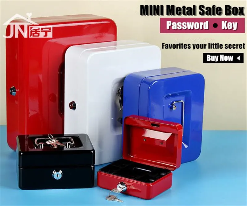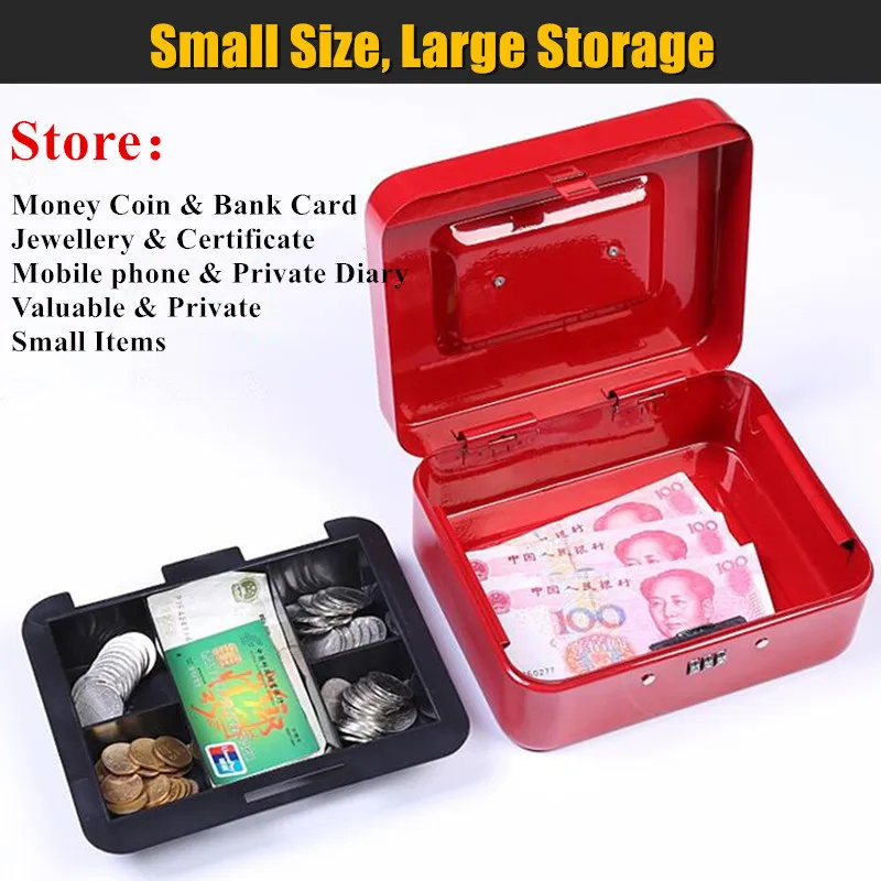 Kid Gift L:25x20cm Metal Mini Safe Box Hidden Secret Safe Key Lock Money Coin Bank Card Jewellery Private Diary Storage Password Locker