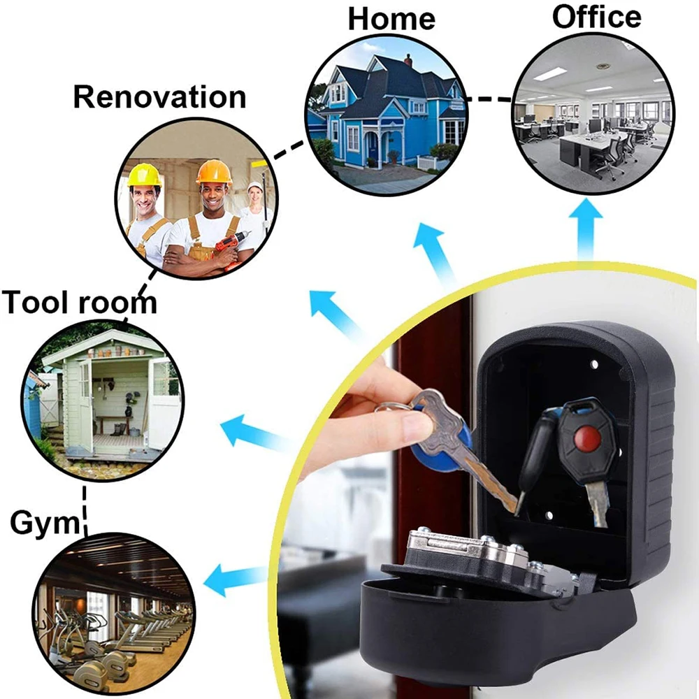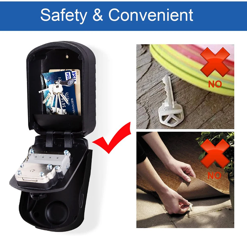Combination key safe box is made of high-hardness Aluminum alloy, it has the characteristics of waterproof and resistant to prying and corrosion, which can protect the internal items well. Weatherproof cover offers waterproof and protect privacy outside.