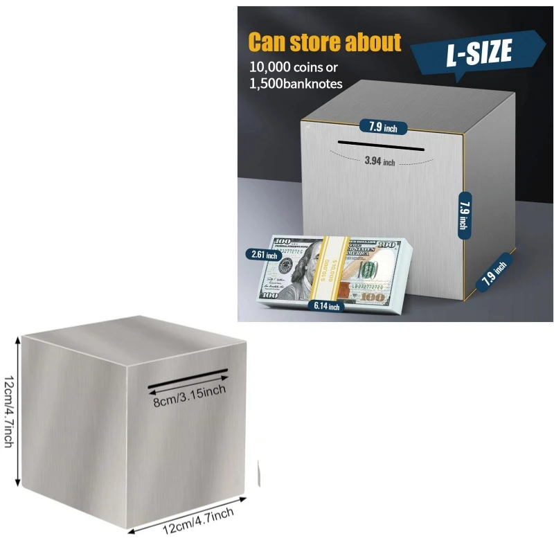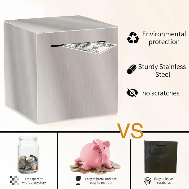 Large Stainless Steel Piggy Bank Only in,No Export Banknotes Large-capacity Coin Boxes Safe Box Money Savings Bank for Kids