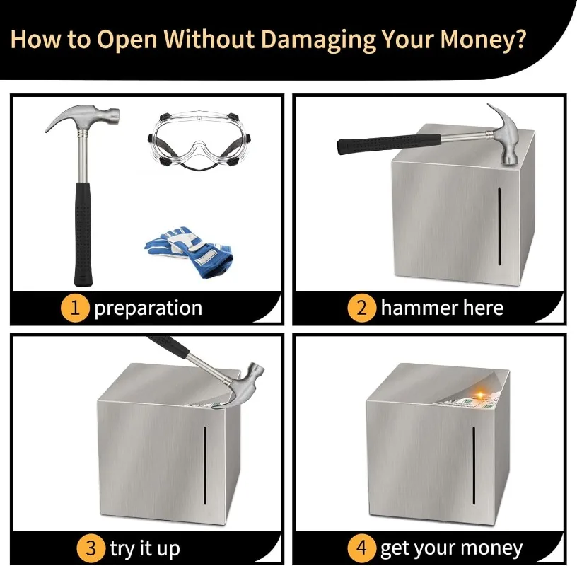 High quality material: this coin bank is made of stainless steel material, which has been carefully screened, cut, welded, polished and polished by our strict material. This high quality coin bank is made with smooth appearance and very good texture.