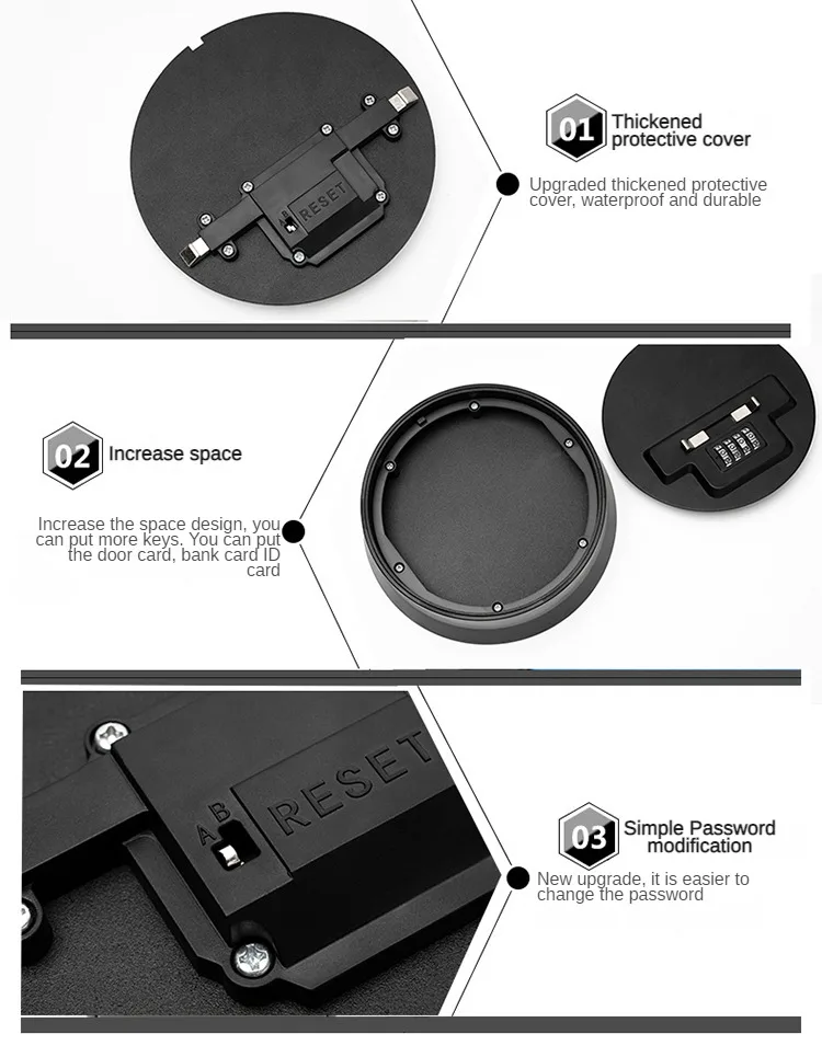 Introducing our Latest Round Aluminum Alloy Password Key Safe Box for Outdoor Use with Theft-Proof Function and Wall Mounting Design! Made from high-quality aluminum alloy, this key safe box is designed to keep your keys safe and secure. Its round shape provides a sleek and modern look, while its theft-proof function ensures that your keys stay protected from unauthorized access.