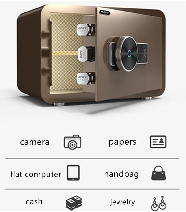 large space can be stored jewelry, gold, cash, documents and other important items, security against theft.
