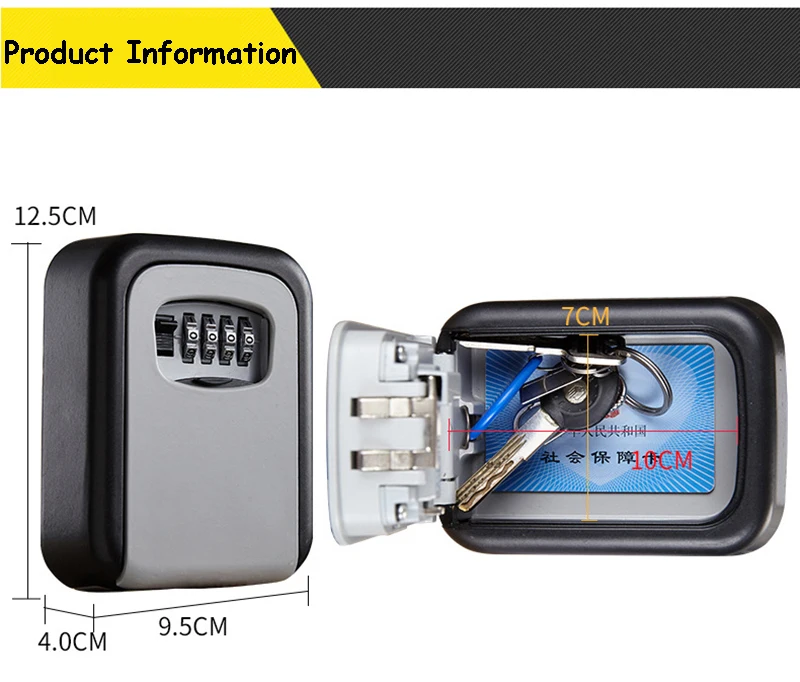 Metal Material Outdoor Wall Mount 4 Digit Password Lock Storage Key Anti Theft Safe Box