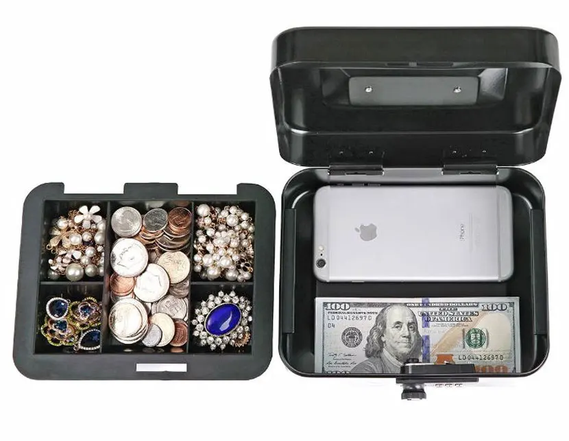 and market with 7 Compartment Tray Lockable Coin Security box