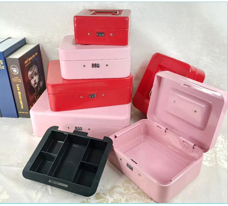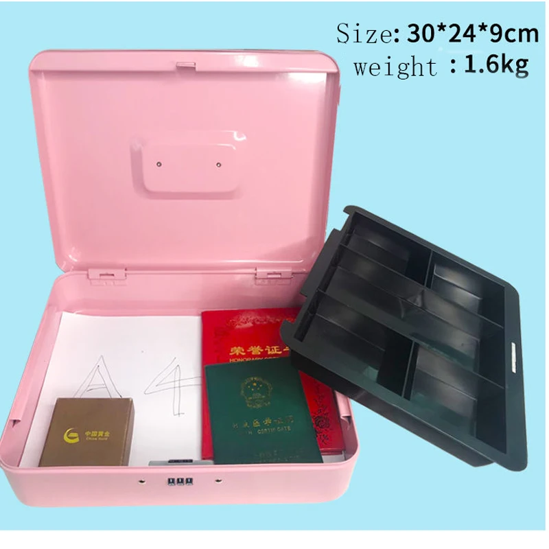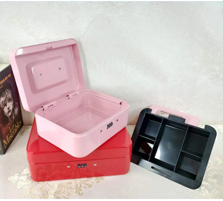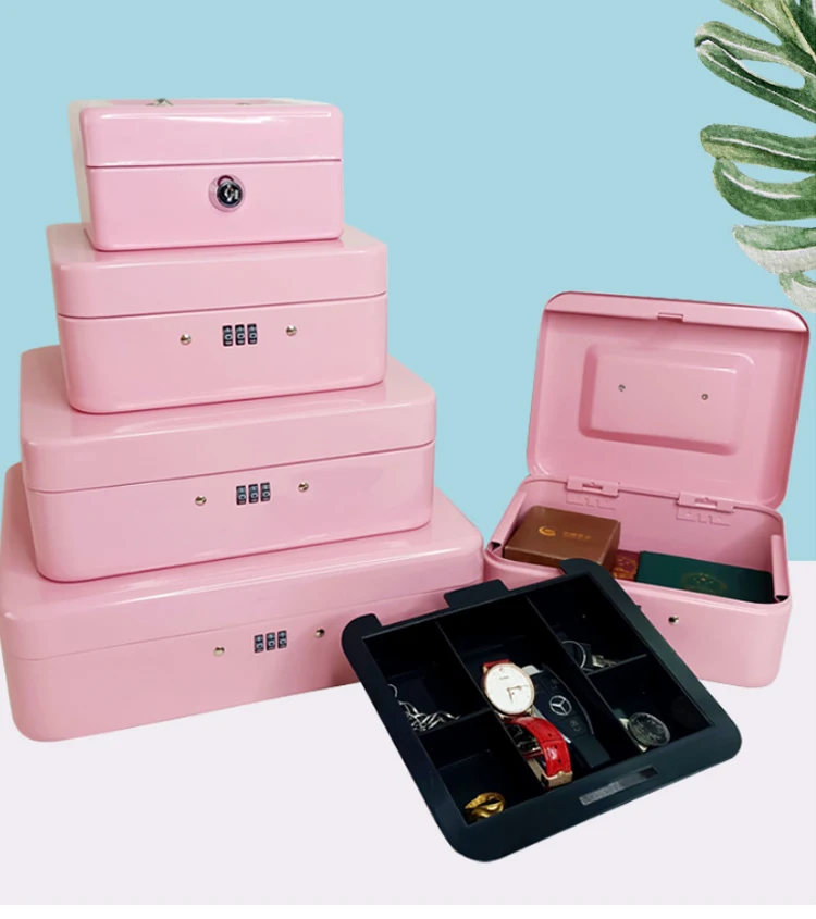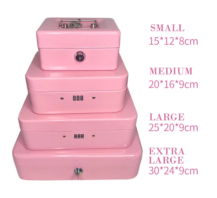 New Metal Box Portable Security Safe Pink-Box Password Lock Children Money Bank Jewelry Storage For Home School Office 4 Sizes