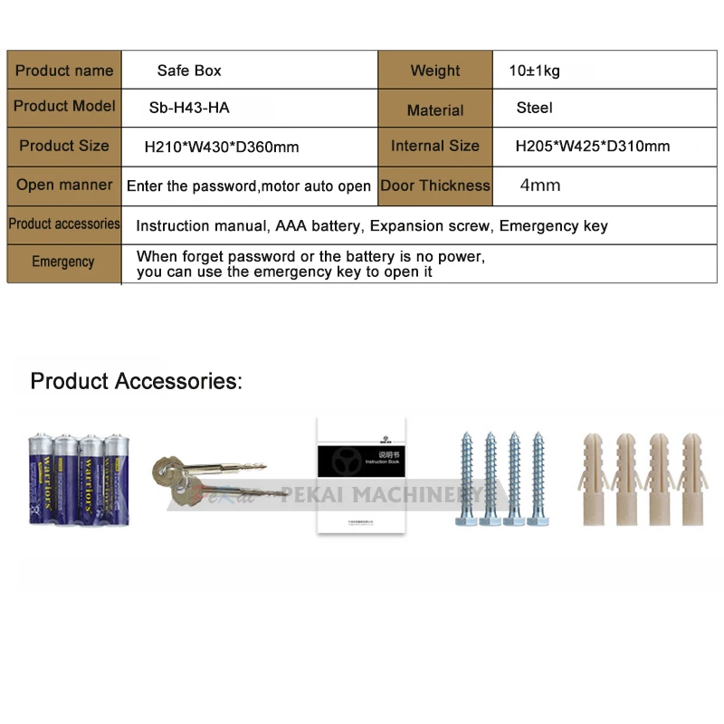Product Description 0.8/1.7/2.1Cubic Feet Safe Box This safety box features a 0.8/1.7/2.1 cubic feet storage capacity and reliable lock systems. You can securely and quickly access the safe with a key, fingerprint, digital code, or fingerprint & digital keypad. It