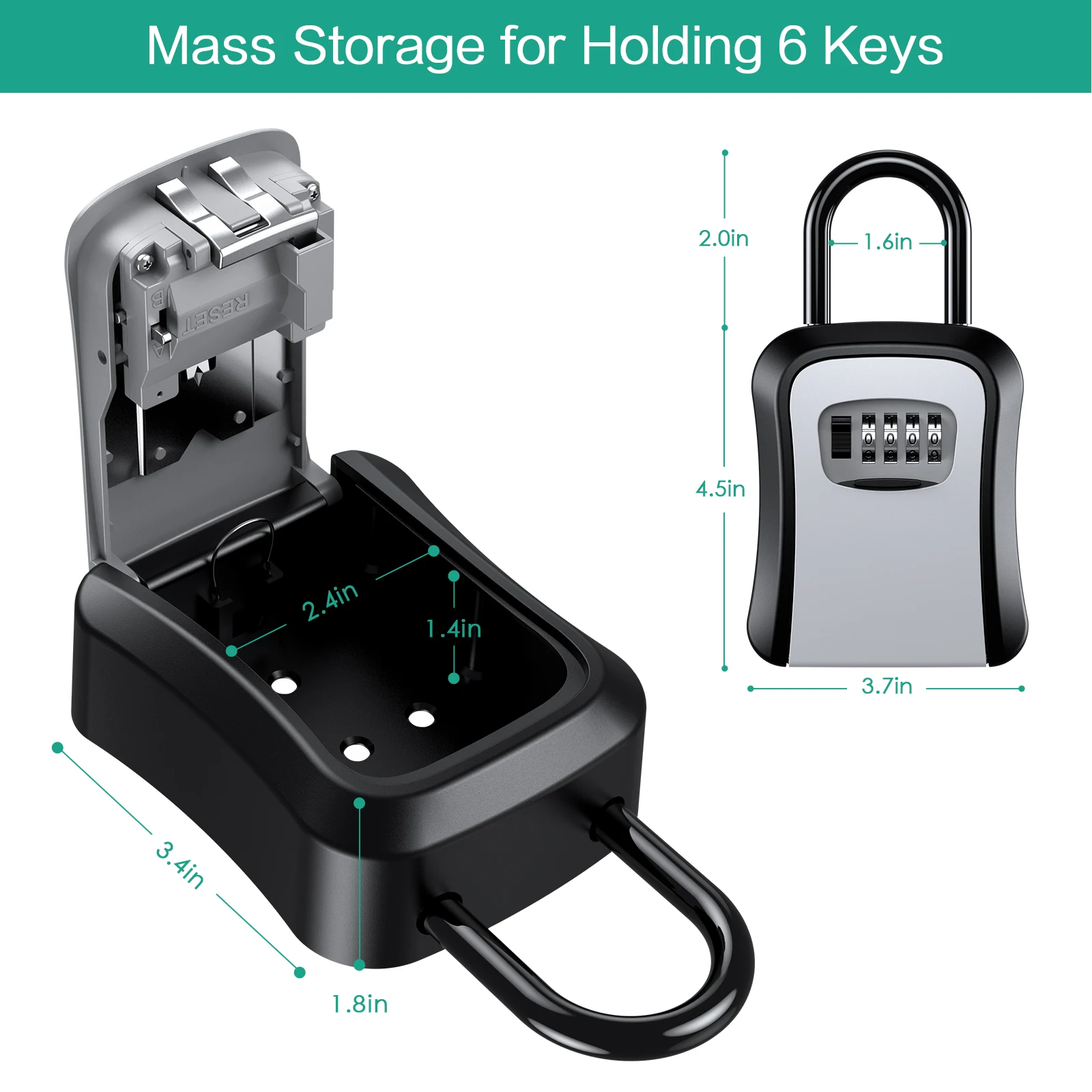 【Large storage capacity】: The key lock box inside size around: 85*62*30mm. The box has large space which you can place 5 keys at most. You can put your house keys or car keys in it when you go to work or on vacation