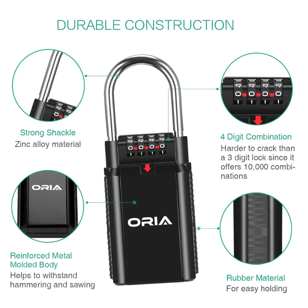 ORIA Key Safe Box Keys Storage Combination Lock Box Key Storage Lock Box 4-Digit Combination Lock Waterproof Indoor/Outdoor