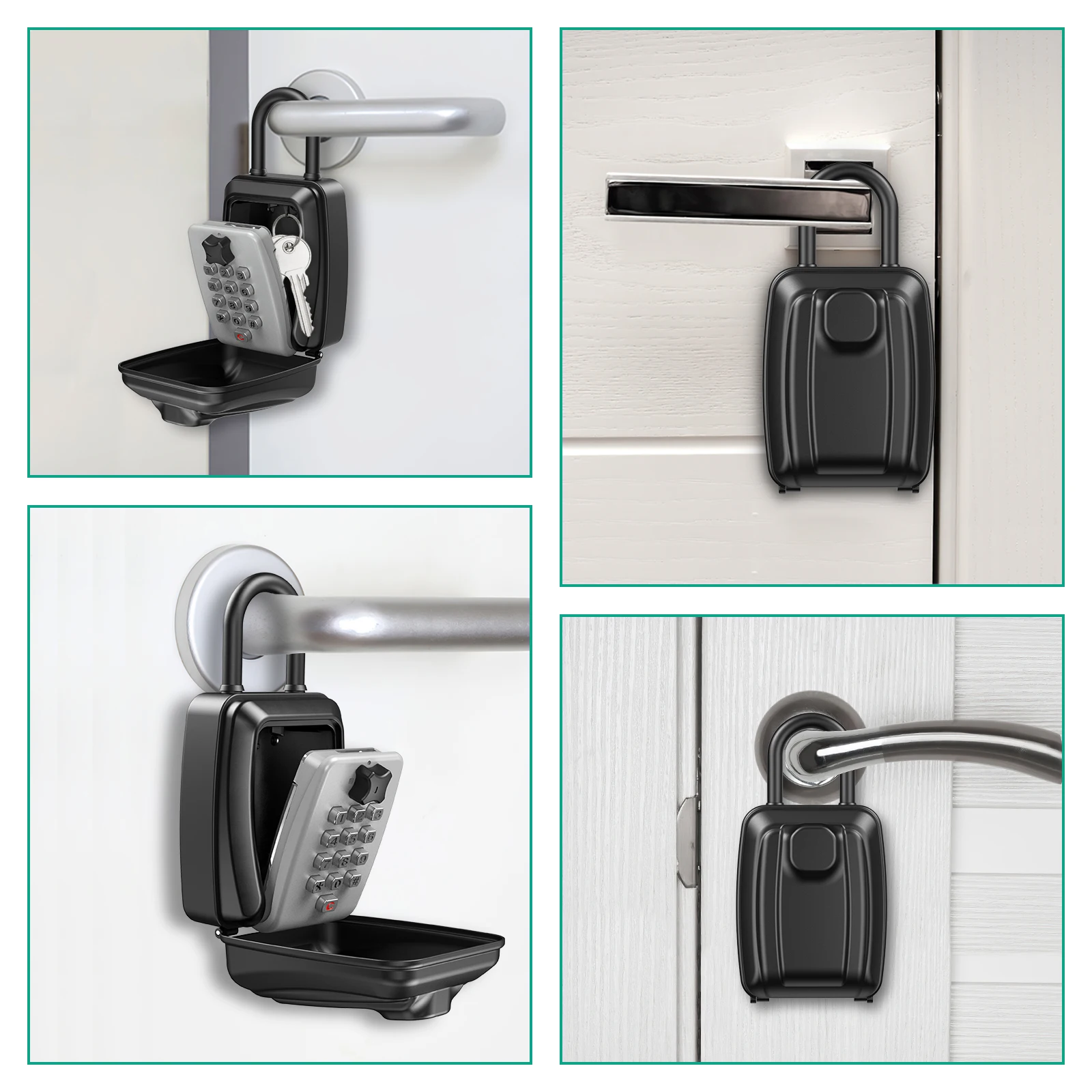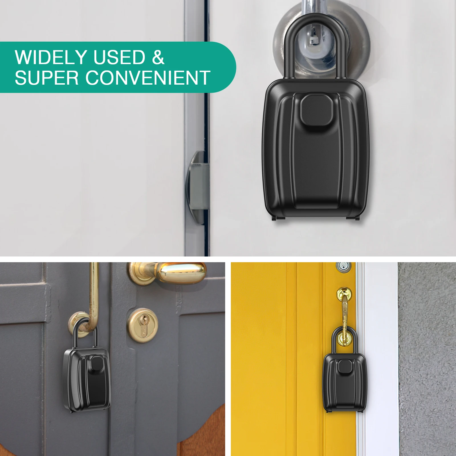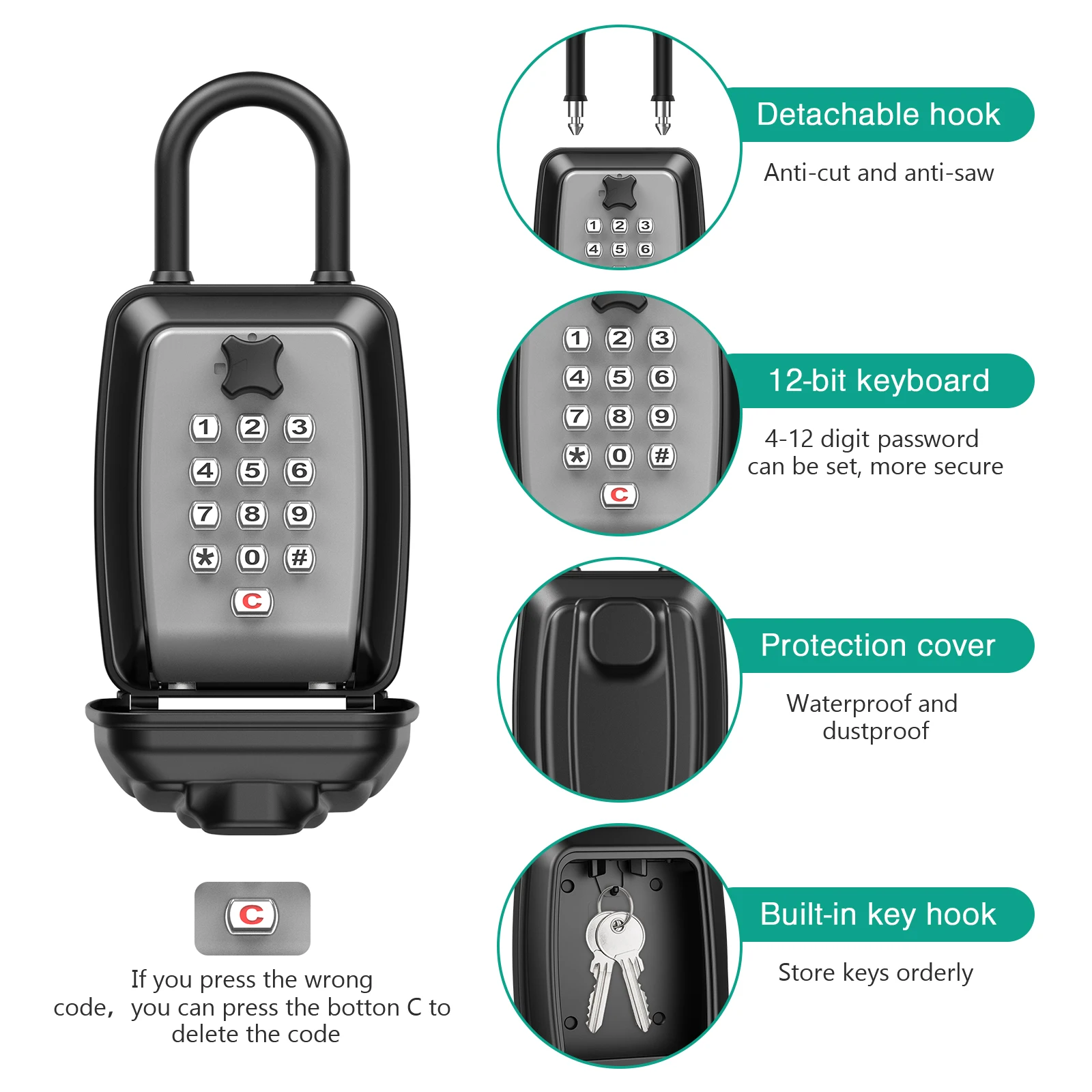 【Simple Operation】No need to dial the password, enter your password like using an old-fashioned mobile phone, you can easily open the lock box, which is more convenient than the traditional dial -unlocking method in the market. With hanging shackle, you could hang it exactly where you need like door knob or car.