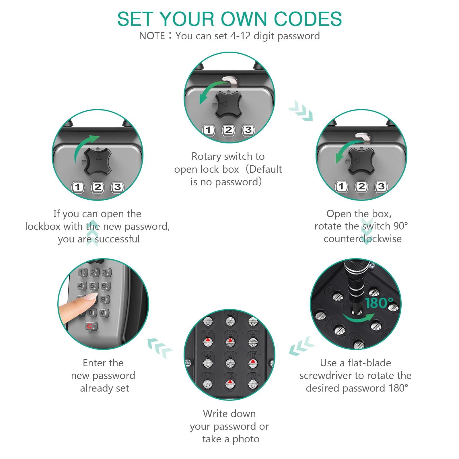 【High Security】The push button combination key lock box is designed with a new upgraded version of the 12 -bit button. And the 9 -digit key password combination is more secure and difficult to crack than the traditional 4 -digit password combination. And it gives you the option of resetting the combination according to your preference.