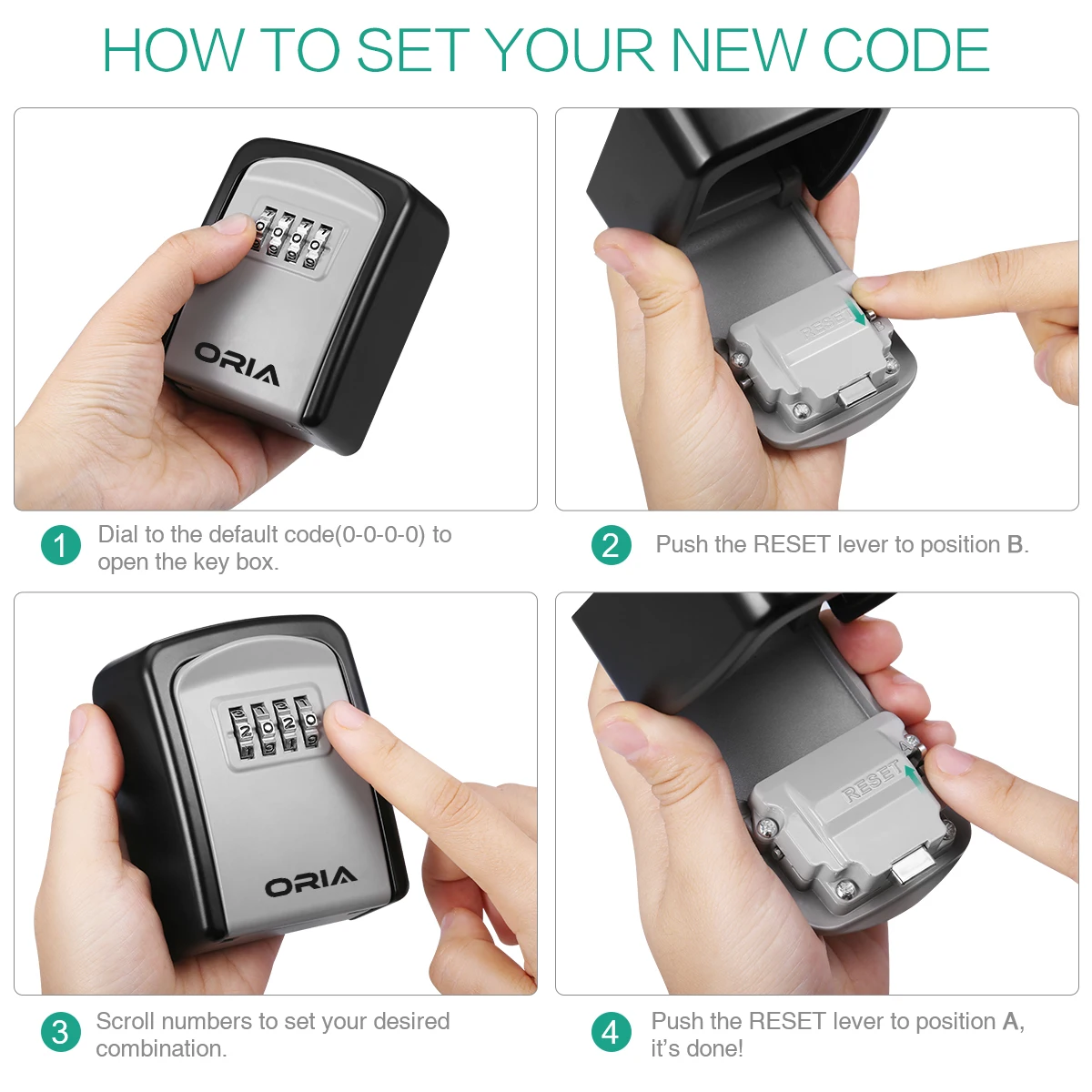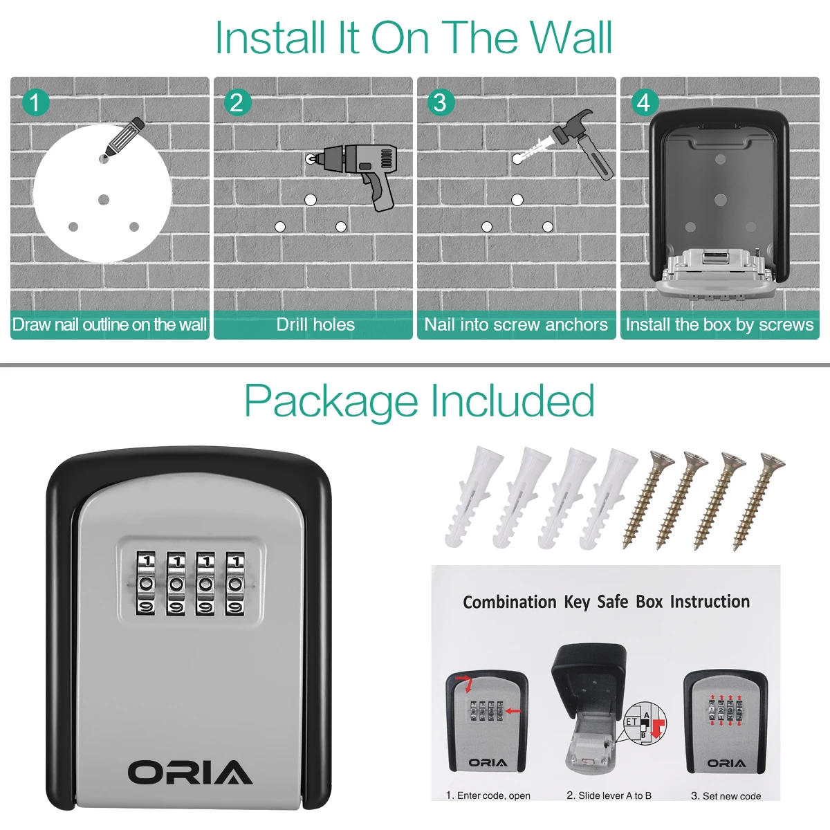 ORIA Password Key Box Decoration Key Code Box Key Storage Lock Box Wall Mounted Password Box Outdoor Key Safe Lock Box Gray