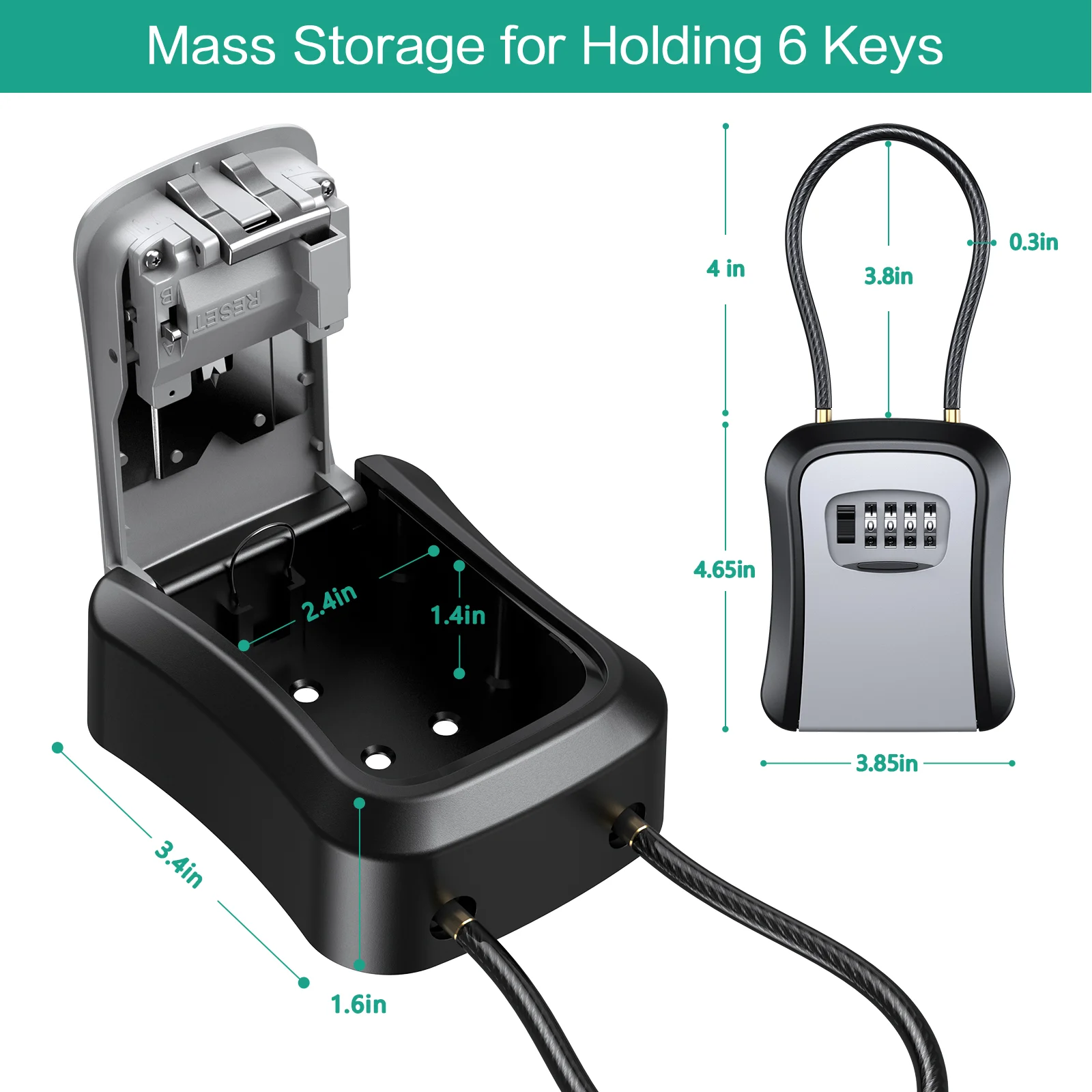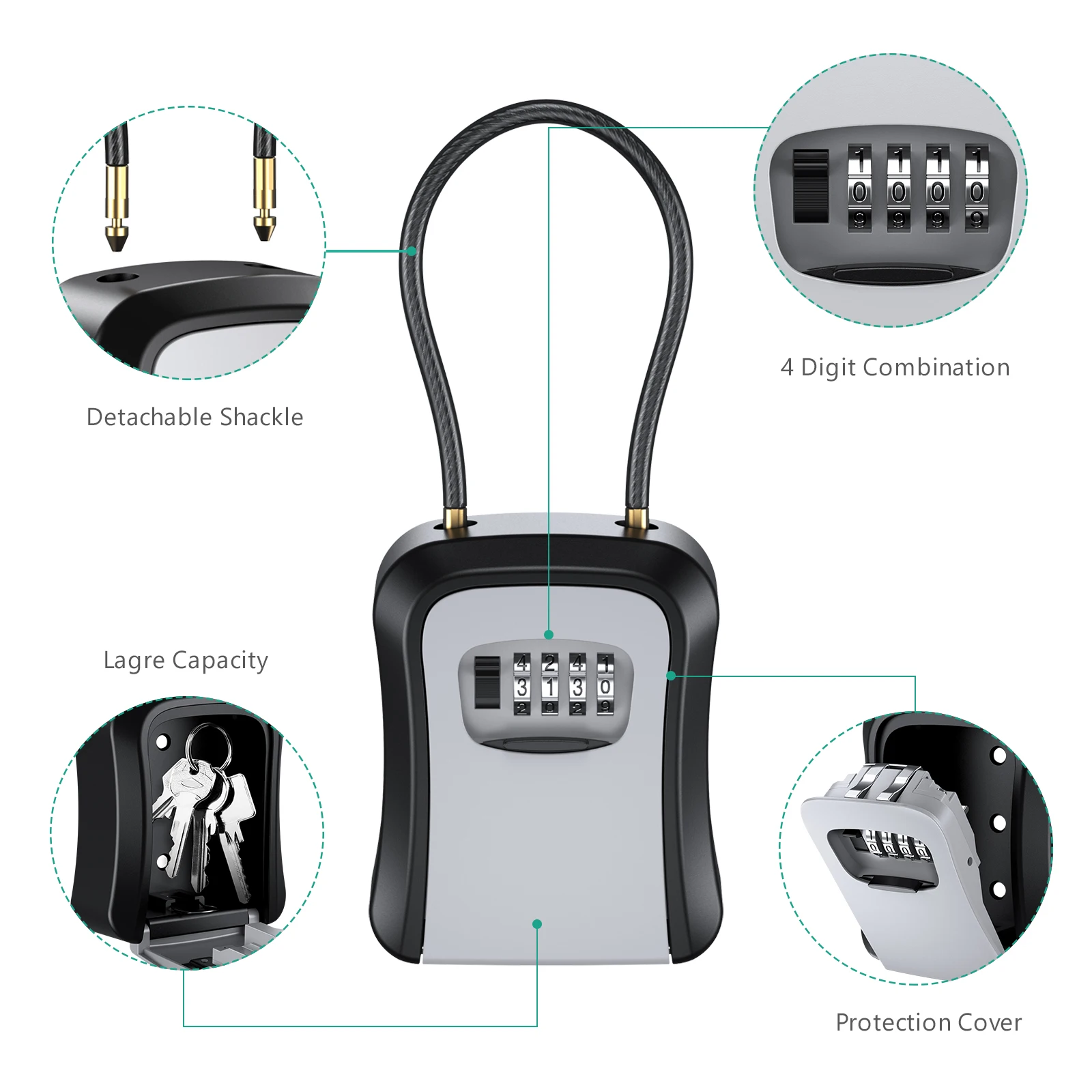 【Durable Material】 High strength zinc alloy body and hardened-steel shackles, offer extra resistance to cutting and sawing. It is harmless to the human body. It is rust resistant, sturdy and a reliable key safe box.