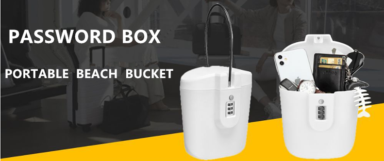 Outdoor Portable Safe Box Beach Bucket with Steel Wire Hidden Safes 3-Digit Password Lock Storage Box for Riding Sports Swimming