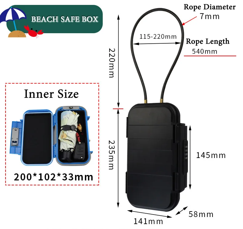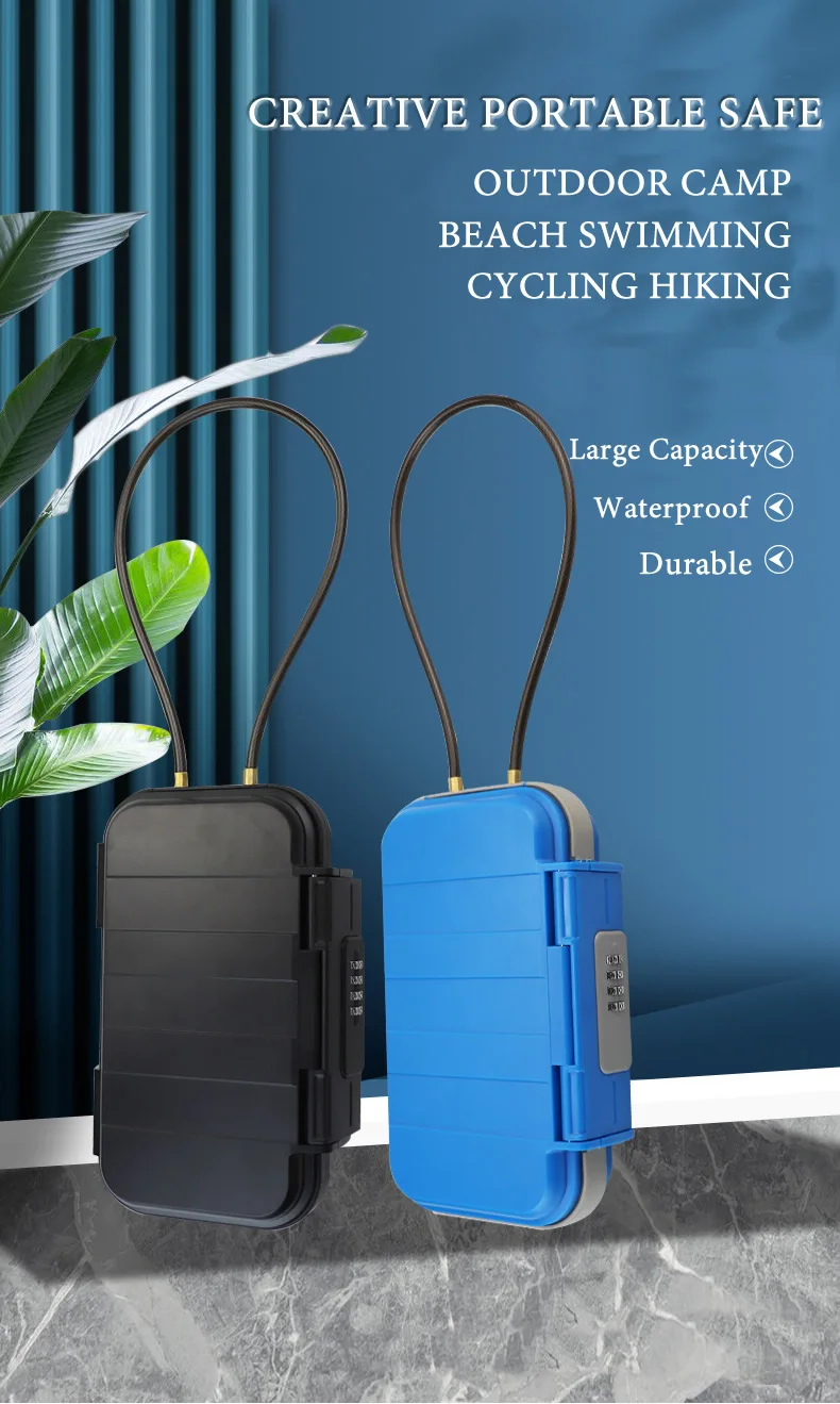 Outdoor Portable Waterproof Safe Box Beach Safes With Wire Rope Hidden Safes Password Lock For Camp Riding Sports Swimming
