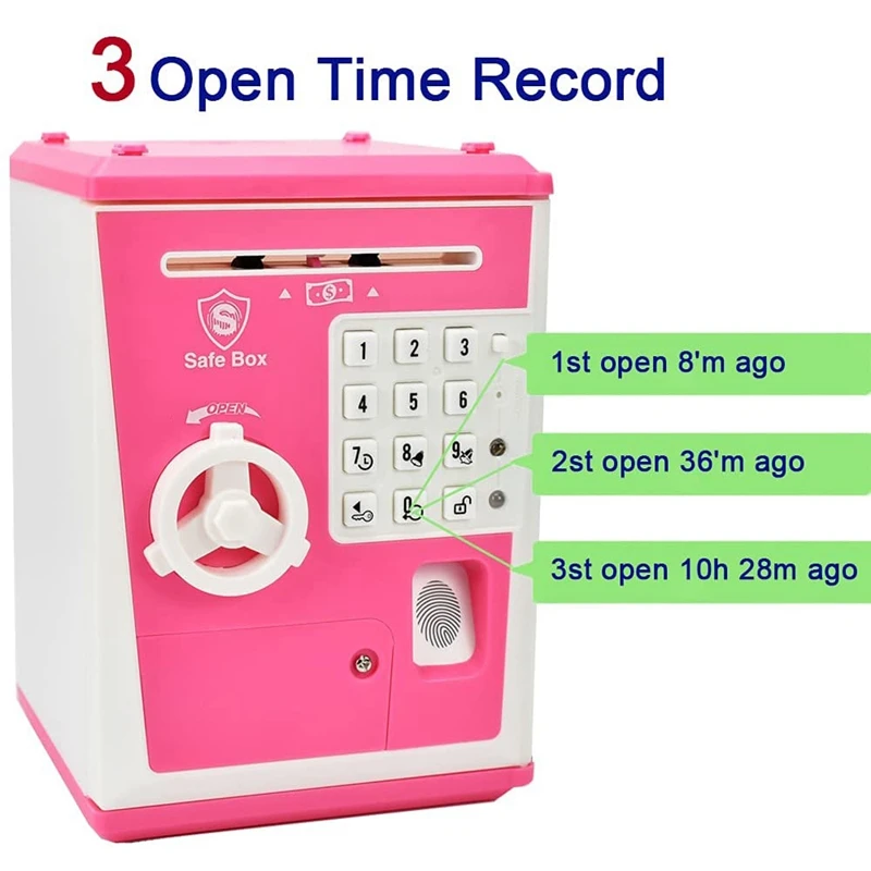 Piggy Bank Cash Coin Money Jar Kids Safe Box With Fingerprint Password Electronic Toy ATM Savings Bank (Pink/White)