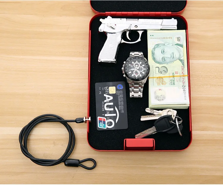 Portable Car Safe Mini Digital Password Lock Box Security Storage Box Valuables Cash Jewelry Organizer With Anti-theft Wire Rope
