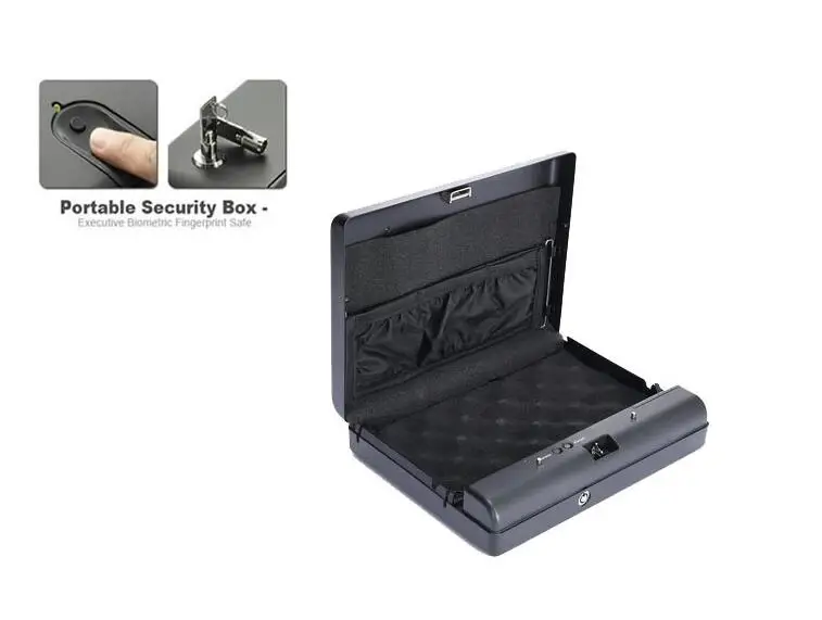 Portable Pistol Safe Mini Fingerprint lock Gun Box Car Security Box To Storage Valuables Cash Jewelry Safe Ammo Box Gun Safes