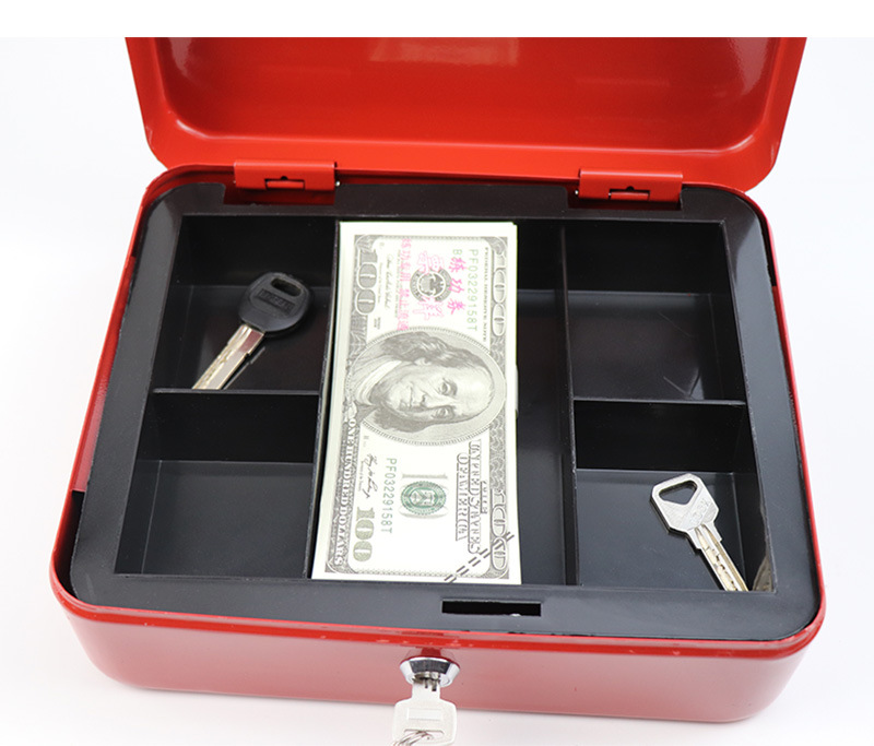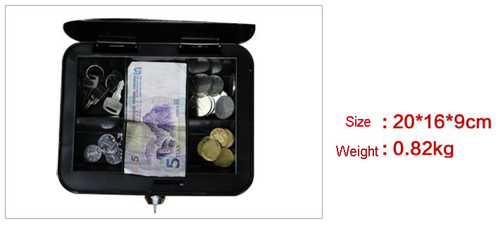 1.Can be used at home, in office, at school, in market stall etc. 2.Attractive appearance with a unique design,light and robust-gloss finish. 3.Sturdy construction with rounded corners. Reinforced locking catch plate. 4.With a stainless steel carry handle. 5.Removable tray has 6 coin sections. 6.Fitted with high quality cylinder lock and supplied with two keys.