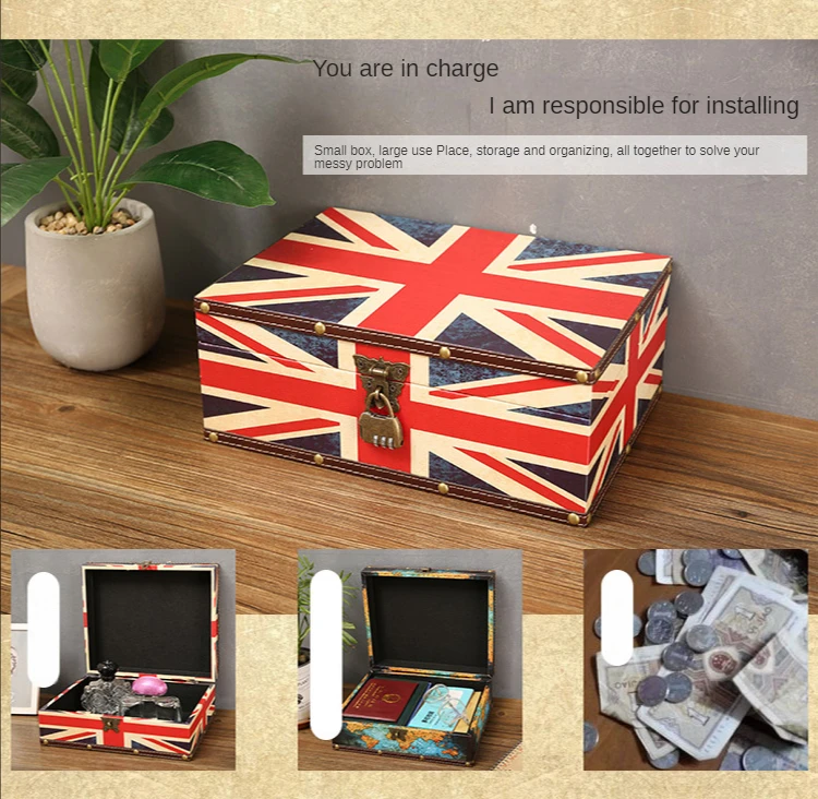 Retro Treasure Chest with Lock Vintage Wooden Storage Box Antique Style Jewelry Storage Box Safe Box