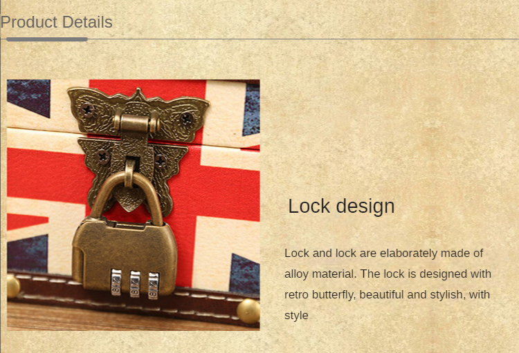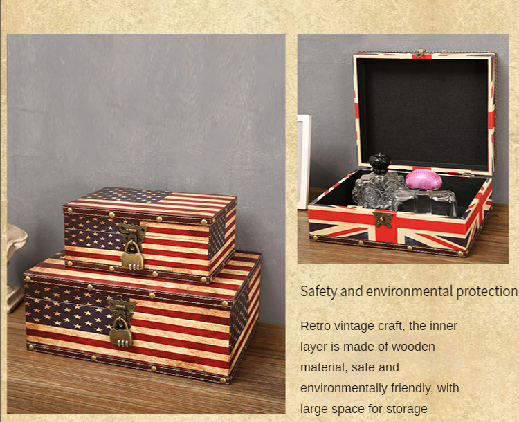Retro Treasure Chest with Lock Vintage Wooden Storage Box Antique Style Jewelry Storage Box Safe Box