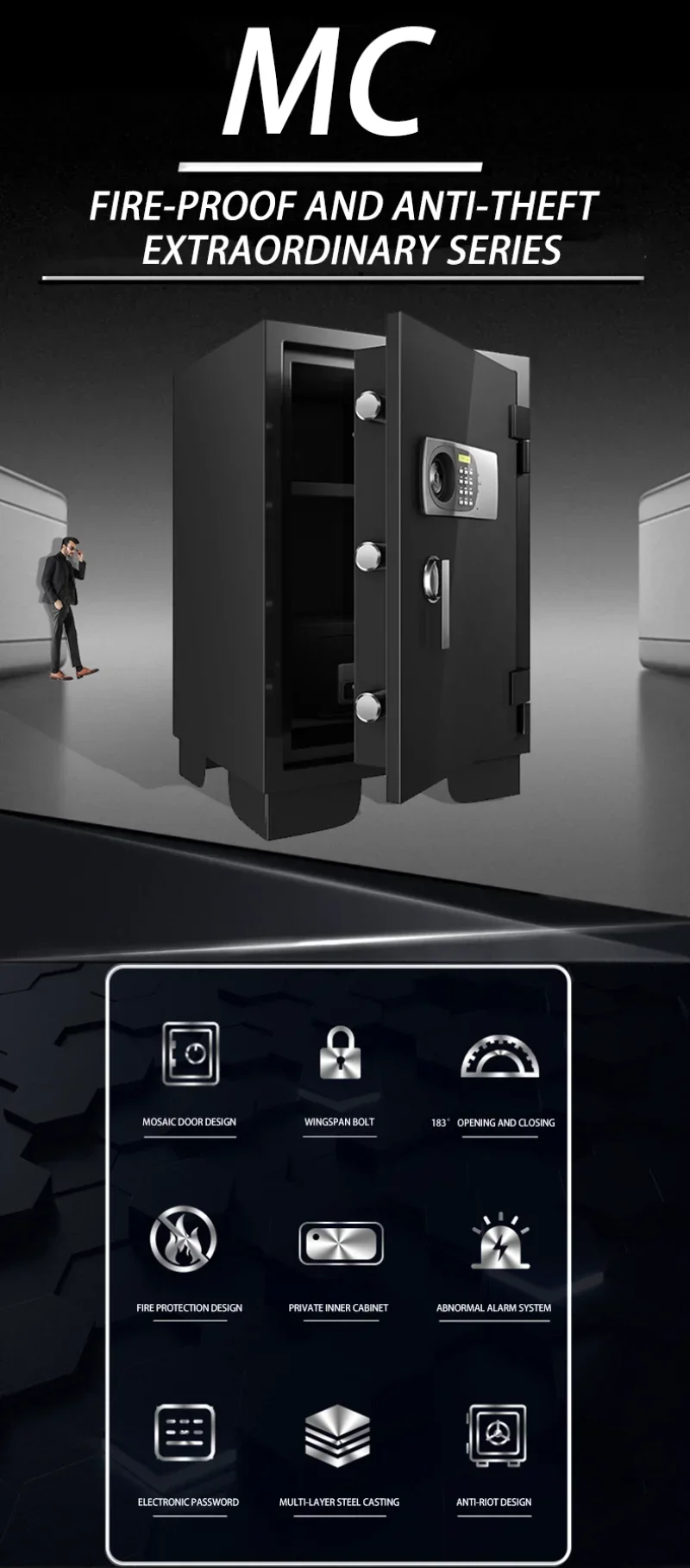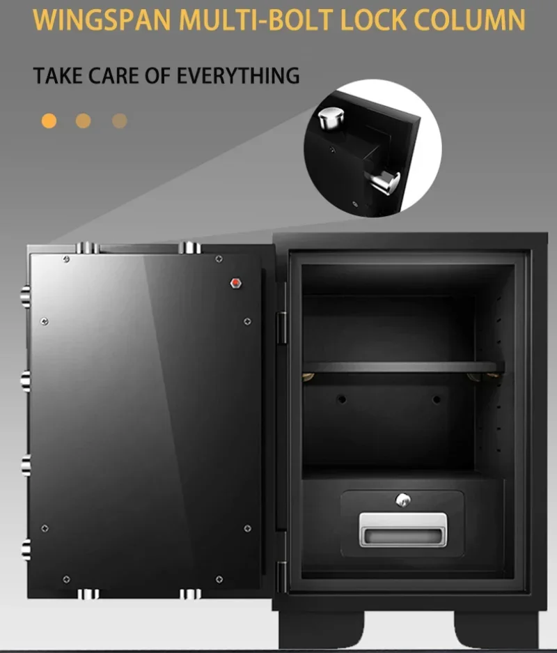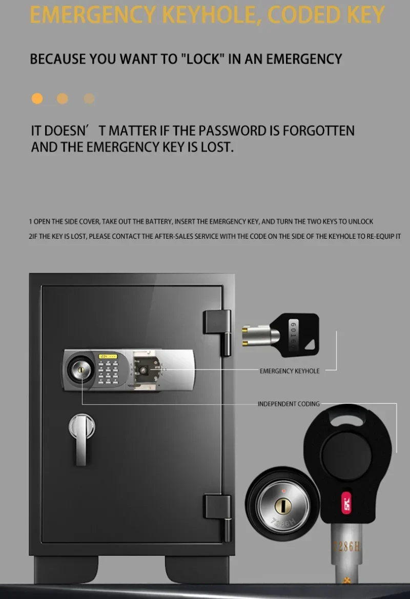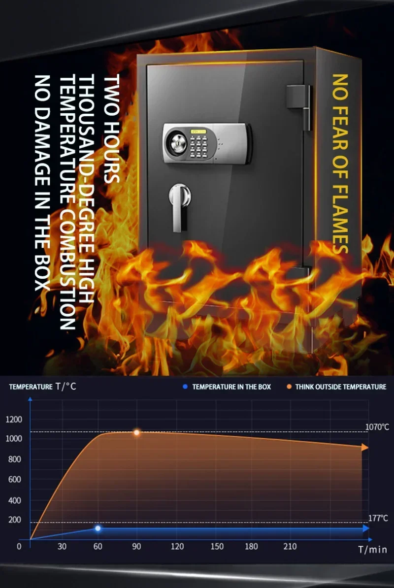 Double protection, double insurance, professional composite fireproof material, no fear of thousands of degrees high temperature, high-strength thickened protective steel body, more fireproof against smashing and prying.