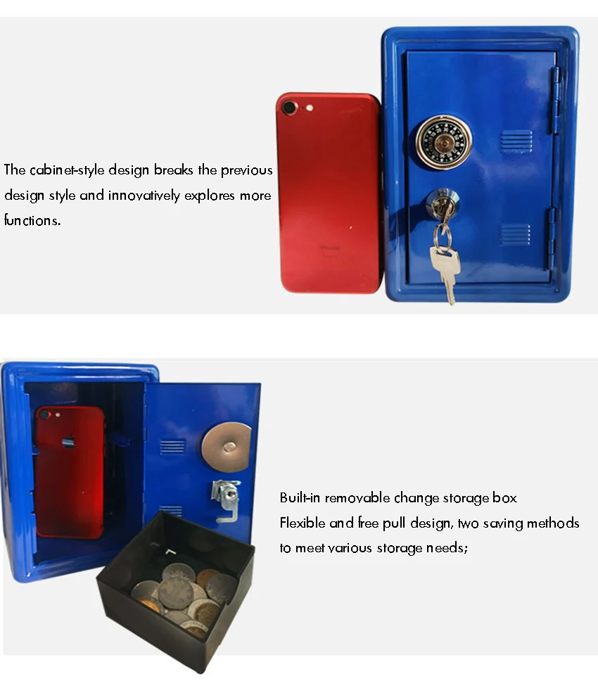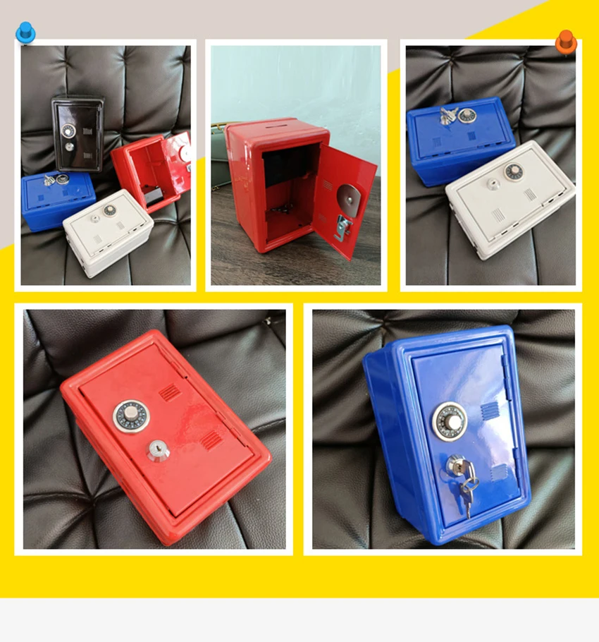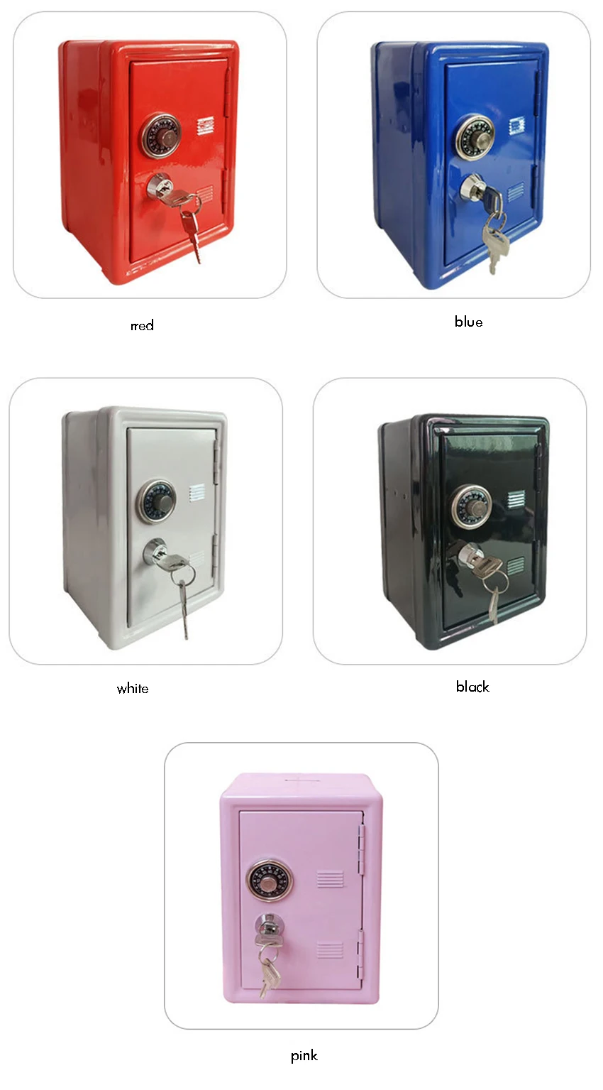 Safe Box Organizer Iron Pink Desk Decorative Box Piggy Bank Metal Mini Cabinet Money Storage Box Kawaii Storage Box