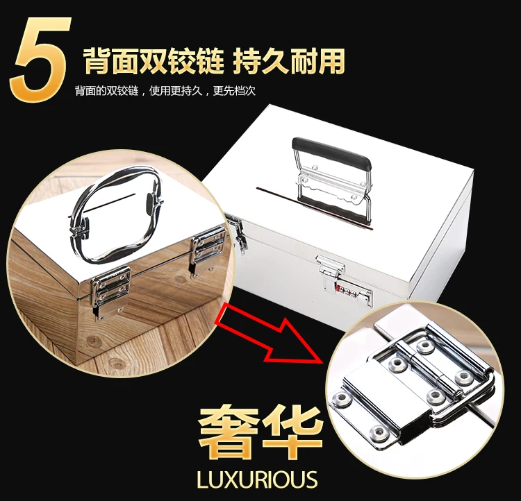 This product is made of stainless steel material, with a smooth surface that does not rust and is resistant to insects and moisture. It is suitable for storing items such as money, official seals, jewelry, and other valuable items
