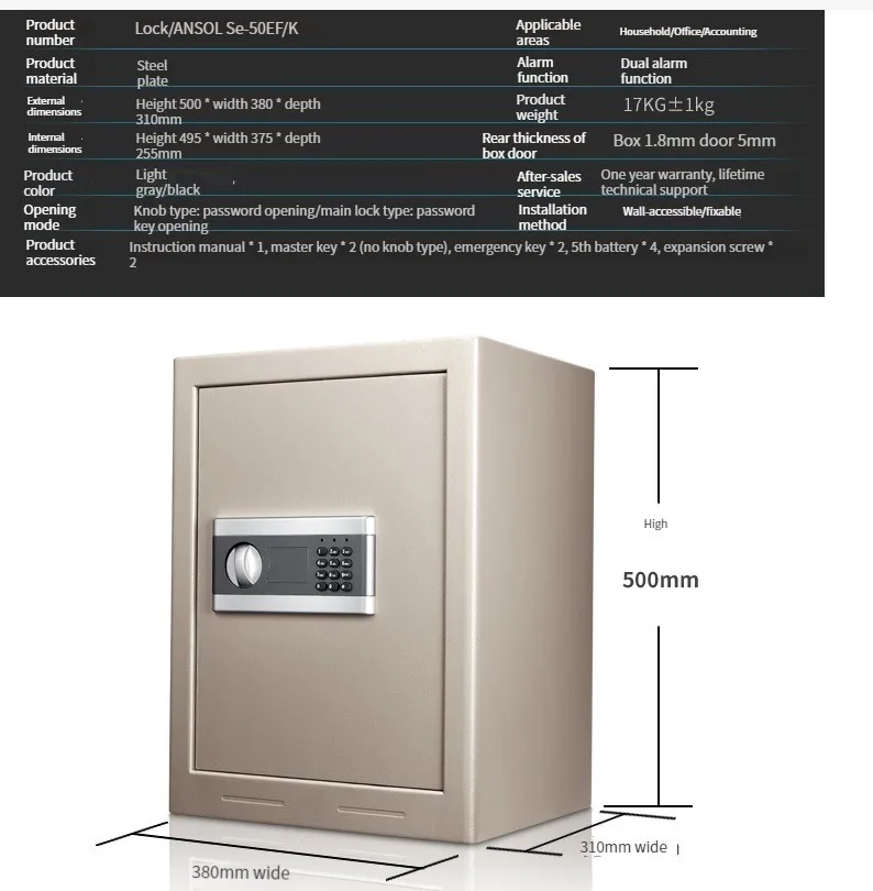 Safe For Household Use Small Safe With Key High Single Door Anti-Theft Electronic Bedside Safe Deposit Box For Office