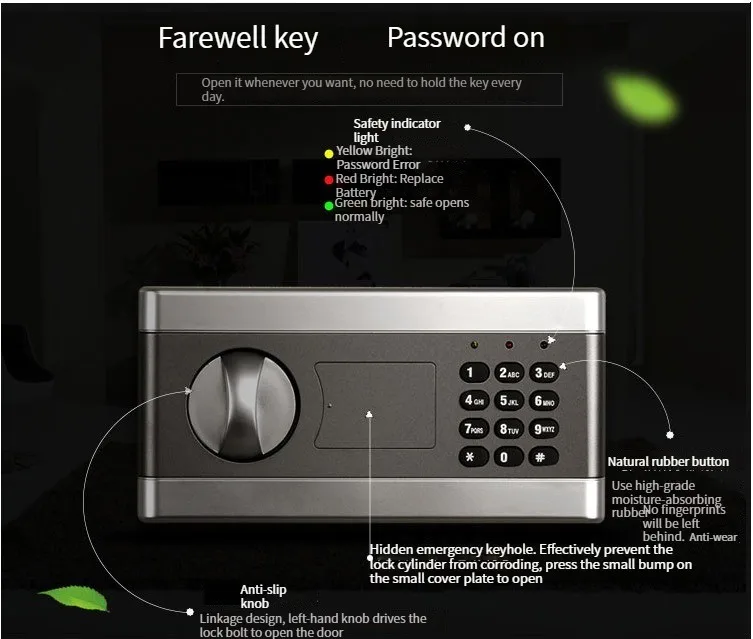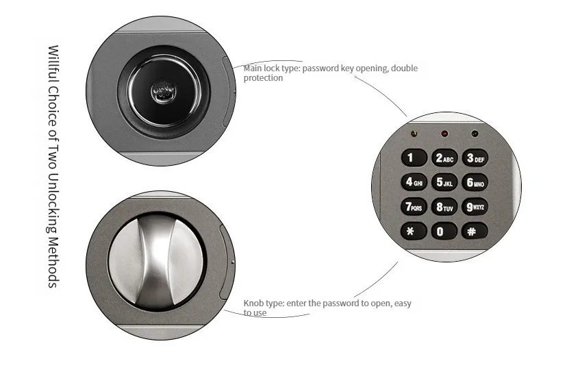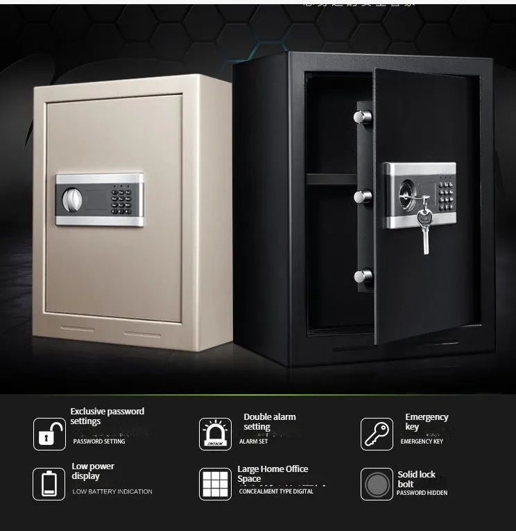 Product Description 0.8/1.7/2.1Cubic Feet Safe Box This safety box features a 0.8/1.7/2.1 cubic feet storage capacity and reliable lock systems. You can securely and quickly access the safe with a key, fingerprint, digital code, or fingerprint & digital keypad. It