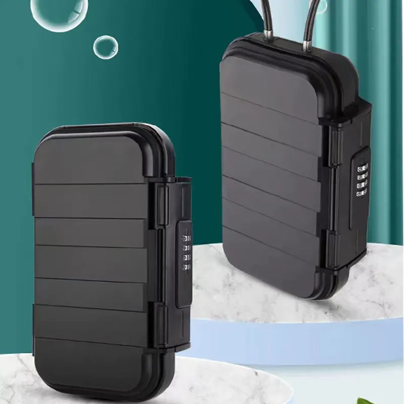 Safe Lock Box Portable Safe Case 4-Digit Combination Lock With Rope Outdoor Camp Hiking Sports Gym Security Storage Key Box