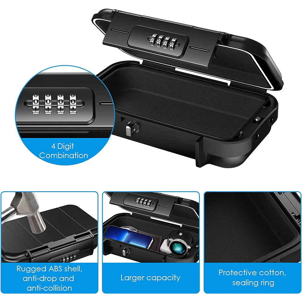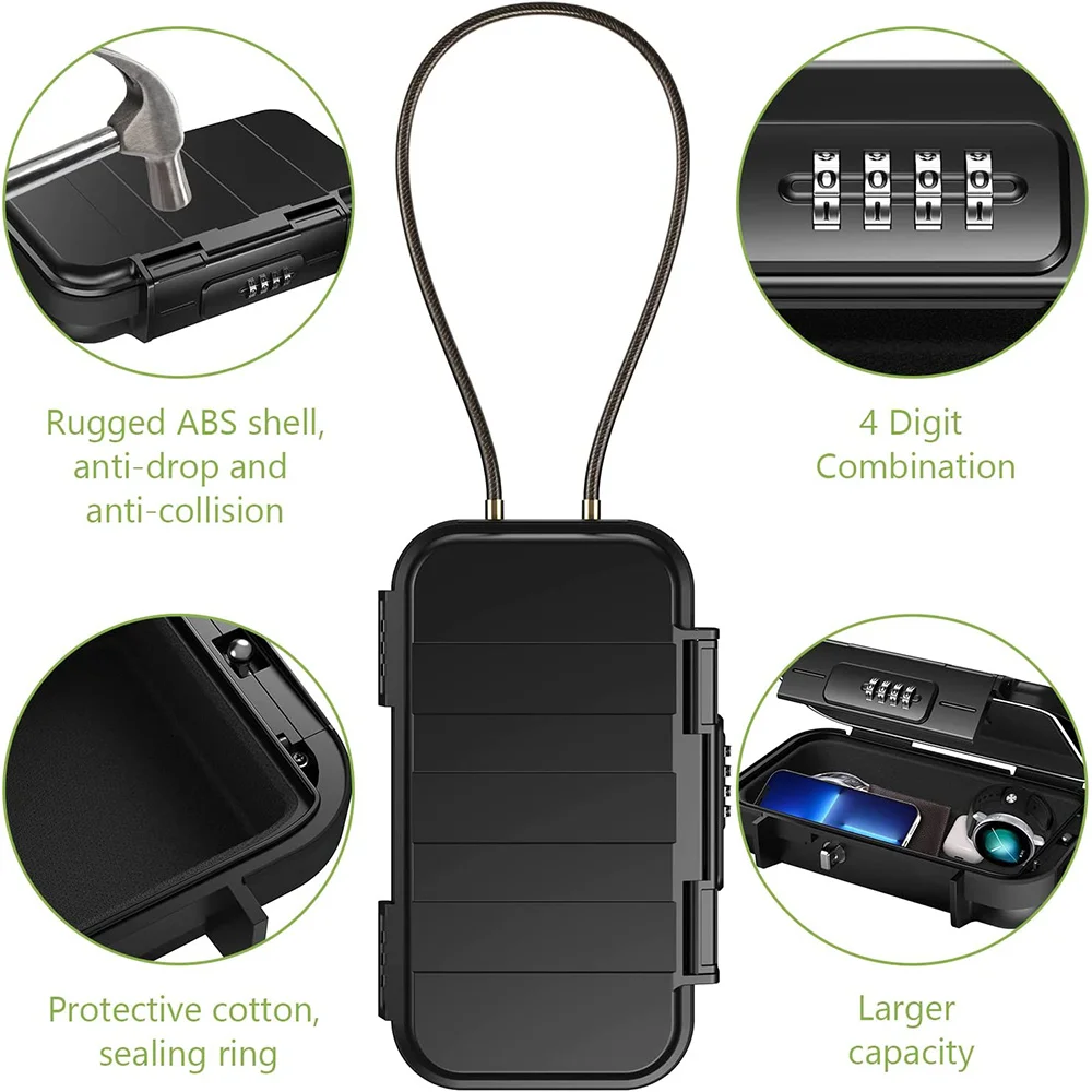 Safe Lock Box Portable Safe Case 4-Digit Combination Lock With Rope Outdoor Camp Hiking Sports Gym Security Storage Key Box
