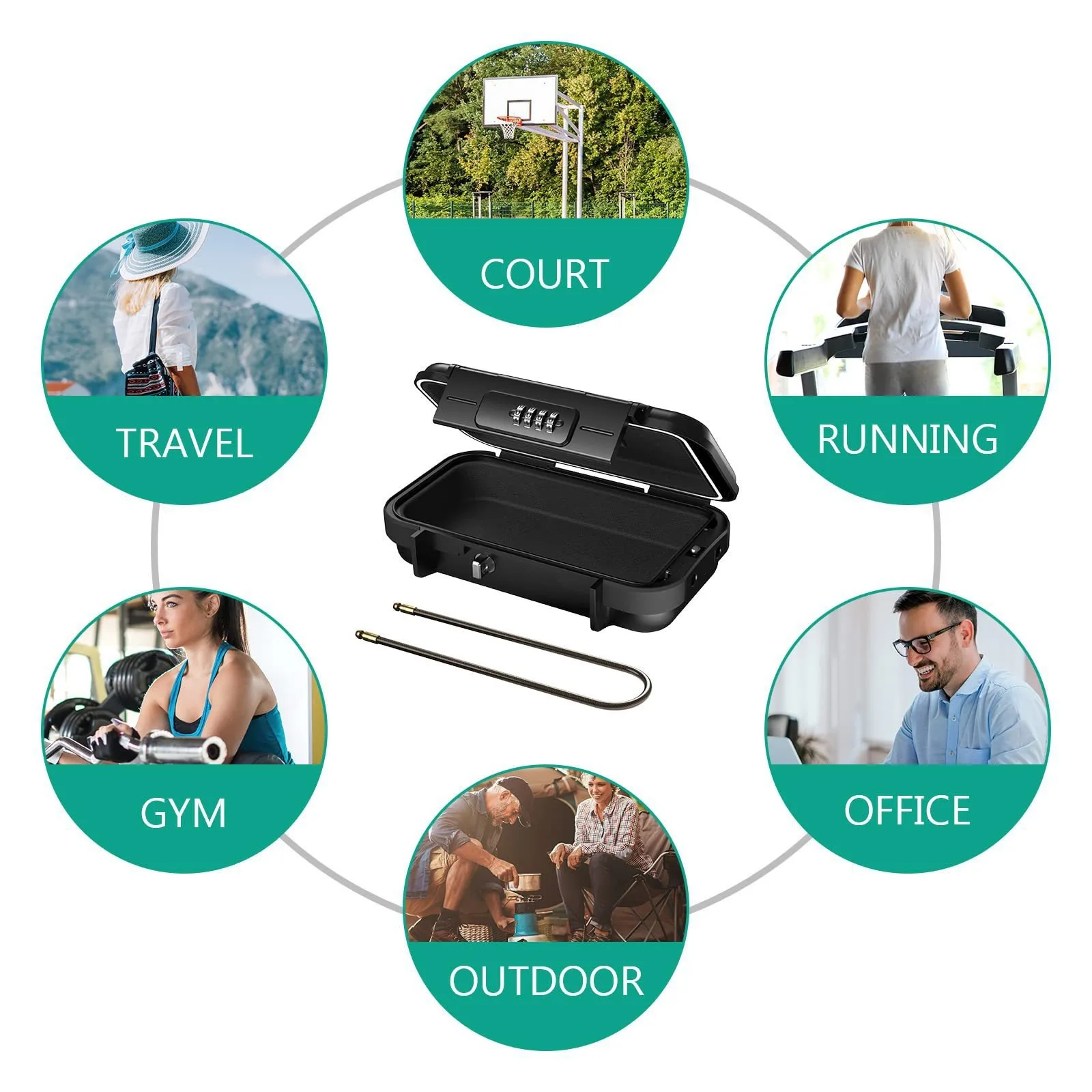 Safe Lock Box Portable Safe Case 4-Digit Combination Lock With Rope Outdoor Camp Hiking Sports Gym Security Storage Key Box