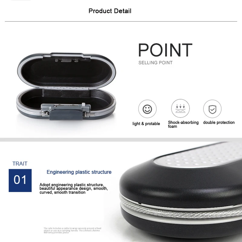 Security Safe Box Mini Portable Personal Safe Combination Lock Strong box Jewelry Cash Card Phone Small Storage Box With Wire Rope