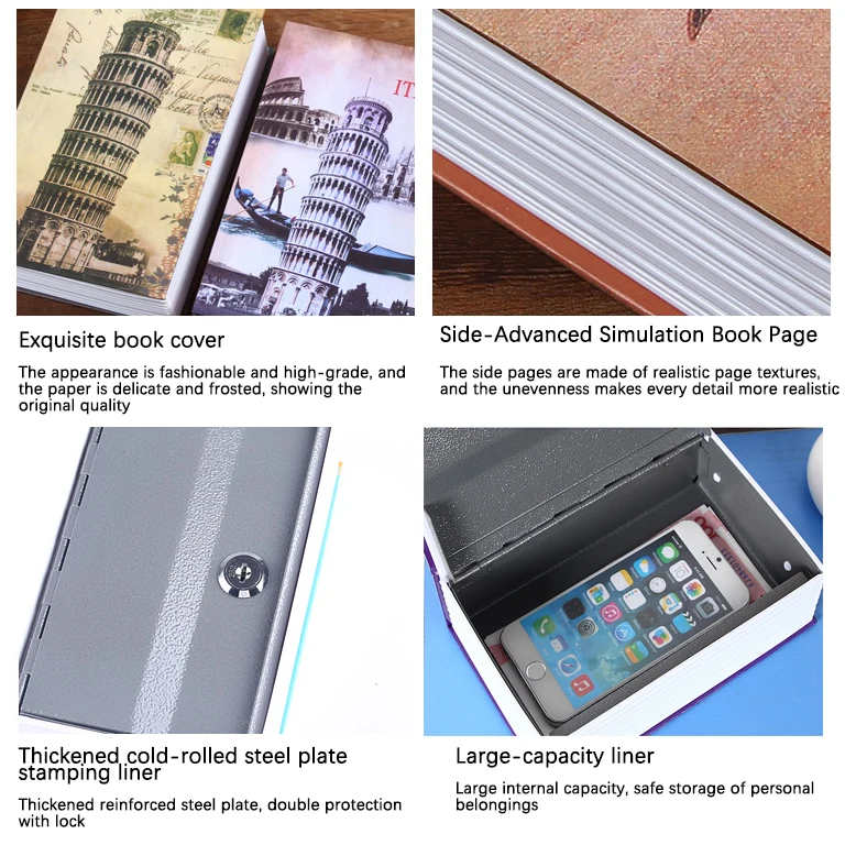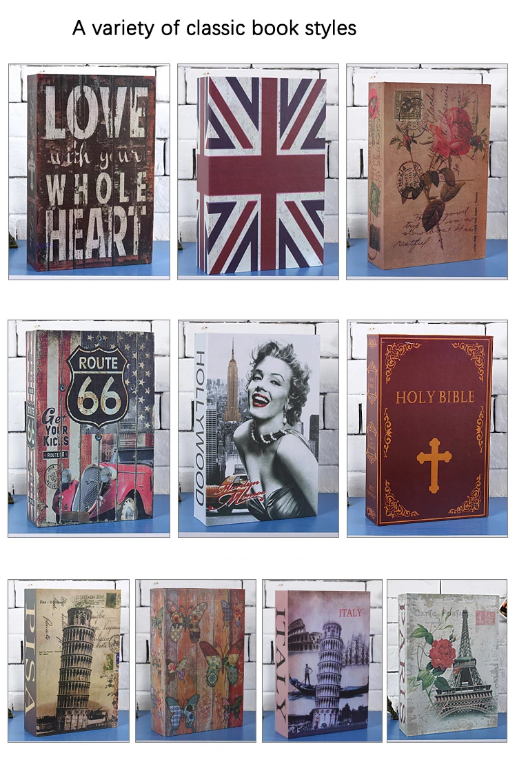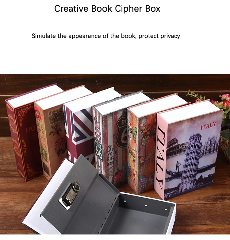 Size 240*155*55mm Key Lock Safety Box Cash Storage box Hidden Secret Safe Steel Simulation Classic Book Safe Box Piggy Bank