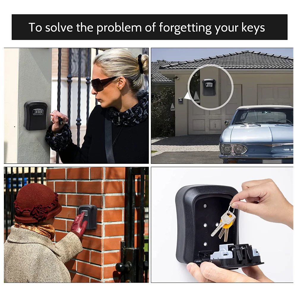 Small Key Box with Code Lock Storage Secret Organizer Wall Mount 4 Digit Combination Home Security Protection Safe Deposit Box