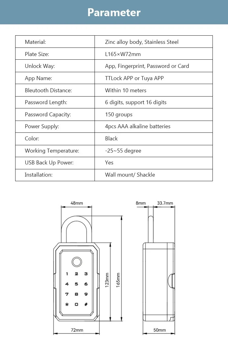 ● Installation:You could hang it exactly where you need like door knob or car.Or you can fix the lock box on the door or wall.Lock box suitable for indoor and outdoor use.