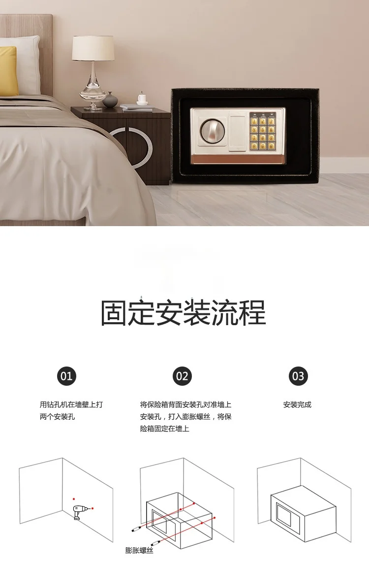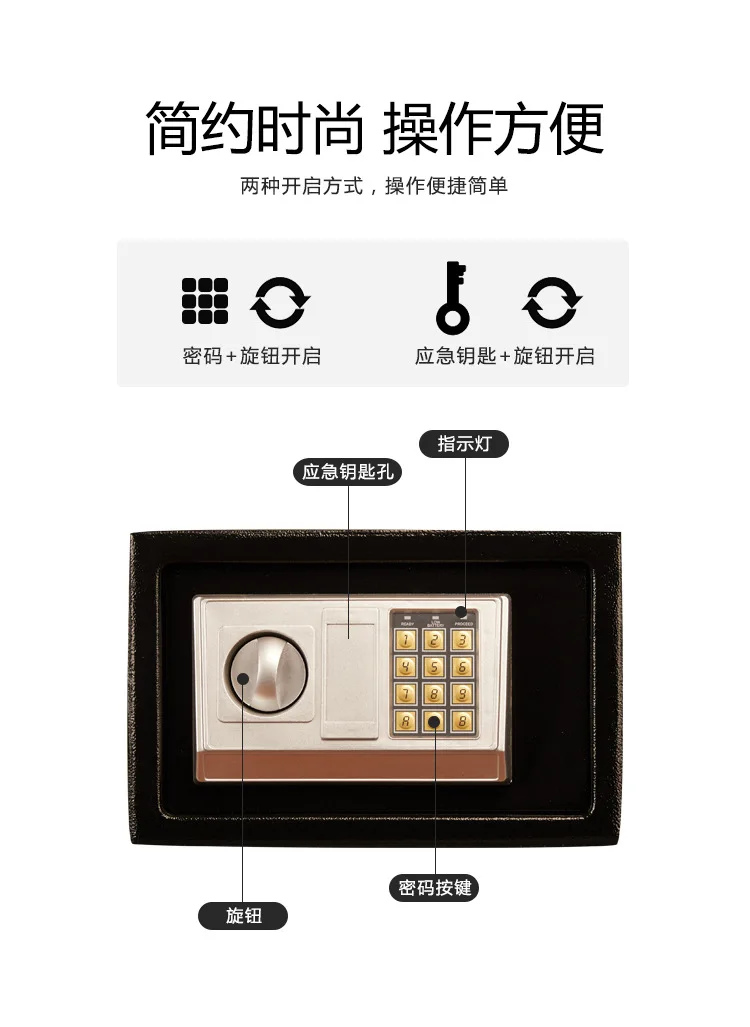 Product Description 0.8/1.7/2.1Cubic Feet Safe Box This safety box features a 0.8/1.7/2.1 cubic feet storage capacity and reliable lock systems. You can securely and quickly access the safe with a key, fingerprint, digital code, or fingerprint & digital keypad. It