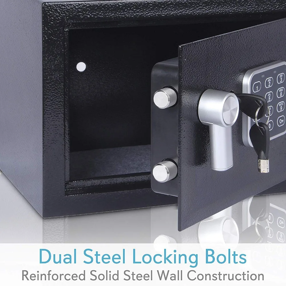 Product Description 0.8/1.7/2.1Cubic Feet Safe Box This safety box features a 0.8/1.7/2.1 cubic feet storage capacity and reliable lock systems. You can securely and quickly access the safe with a key, fingerprint, digital code, or fingerprint & digital keypad. It