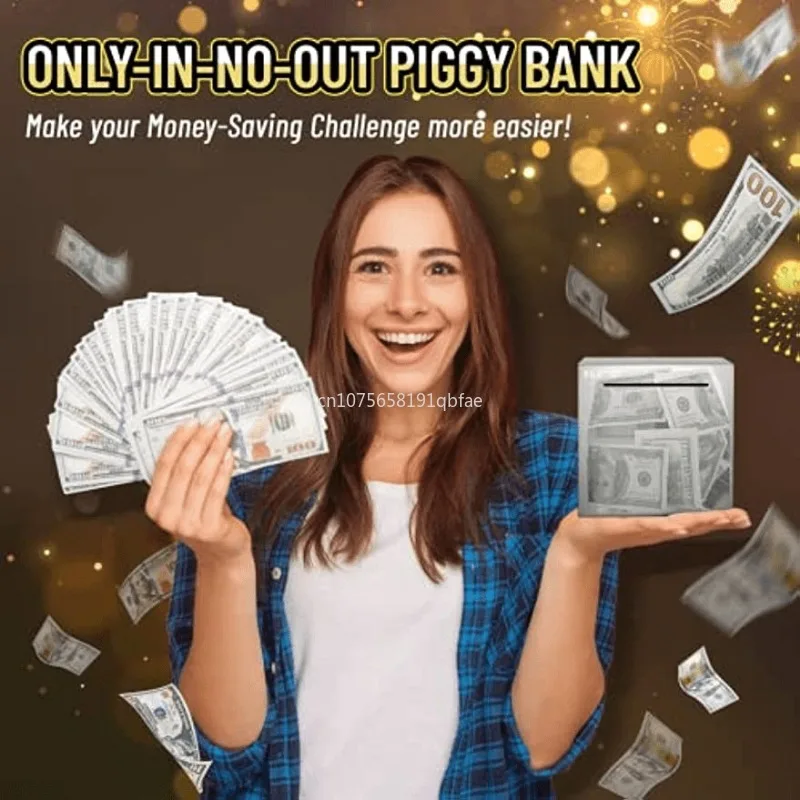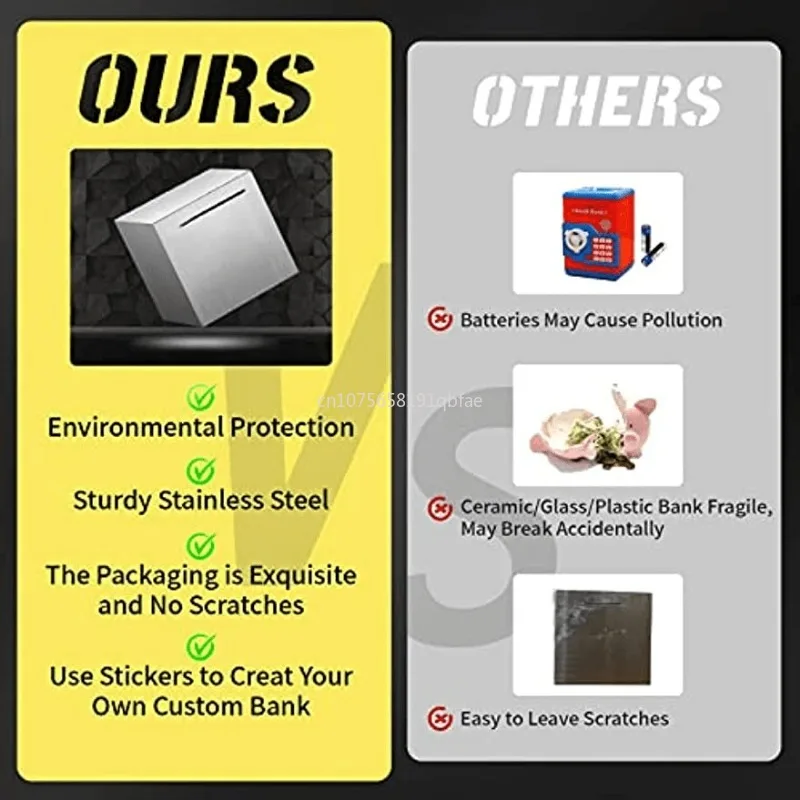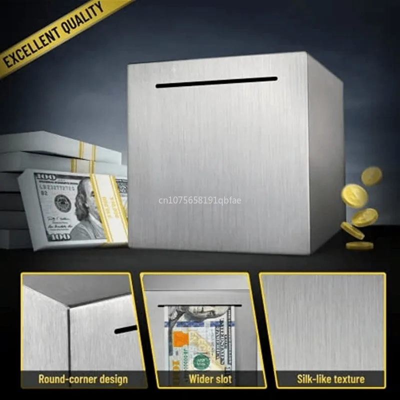Stainless Steel Piggy Bank Safe Money Bank Square Cash Saving Kids Adults Coin Cash Storage Box Home Ornament Must Break To Open