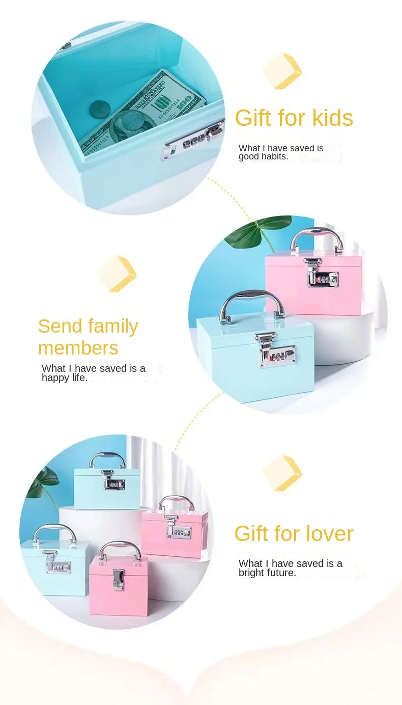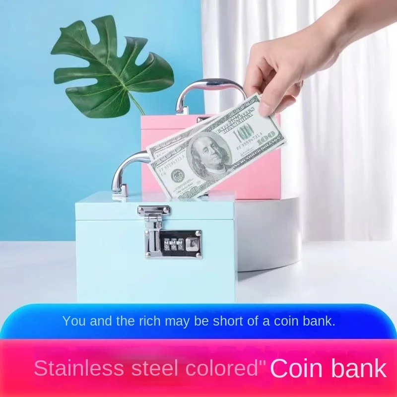 Stainless Steel Portable Safe, Cash Box, Money, Piggy Bank, Coin Storage, Code Lock Children's Safe Gift Piggy Bank Jewelry Box
