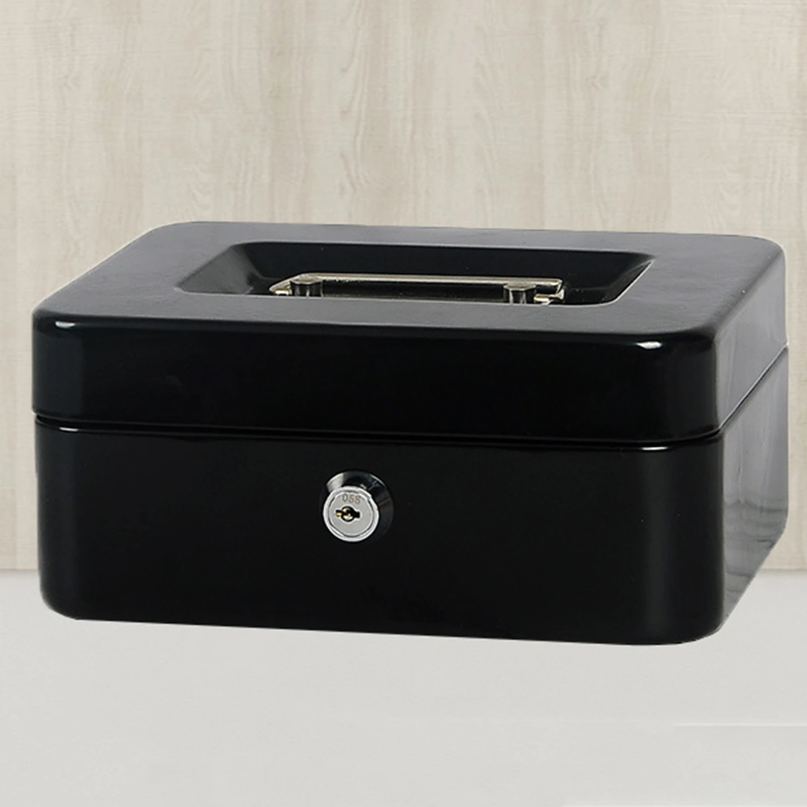 Standard Steel Cash Box with Lock Cash Drawer Tray Locking Cover Small Safe Lock Box with Key