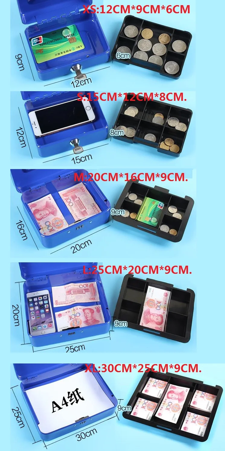 Steel Key Safe Cash Boxes Store Content Paper Piggy Bank Card A4 Document Large Boxes