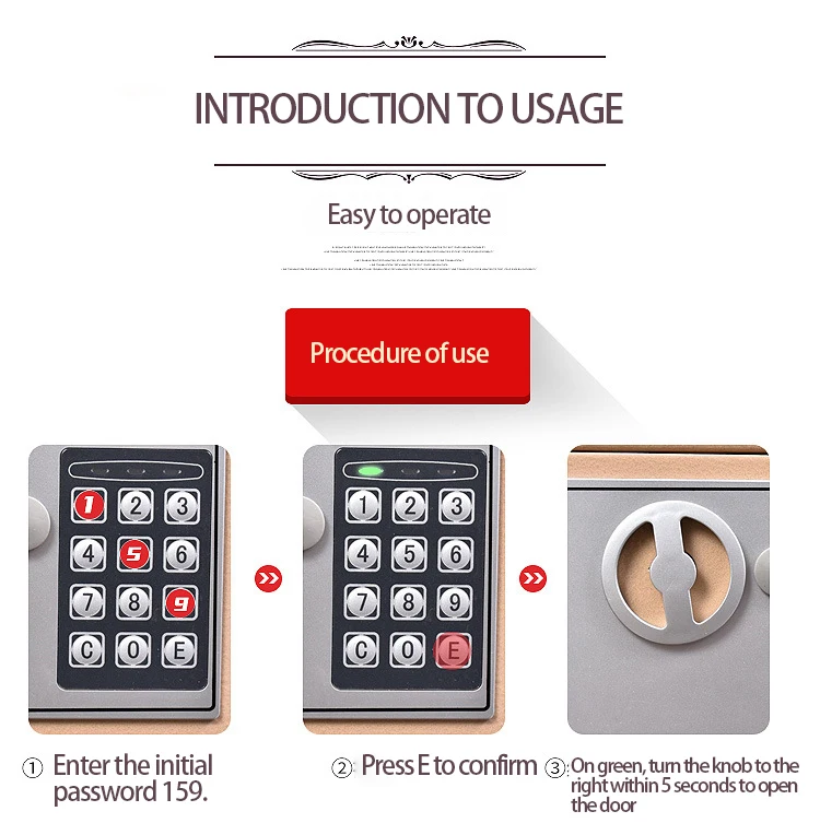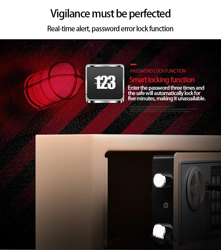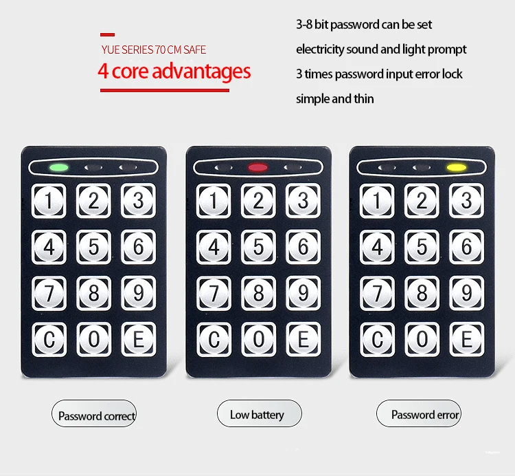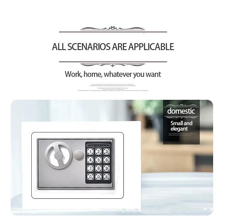 Product Description 0.8/1.7/2.1Cubic Feet Safe Box This safety box features a 0.8/1.7/2.1 cubic feet storage capacity and reliable lock systems. You can securely and quickly access the safe with a key, fingerprint, digital code, or fingerprint & digital keypad. It
