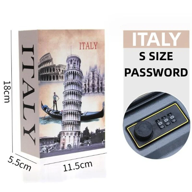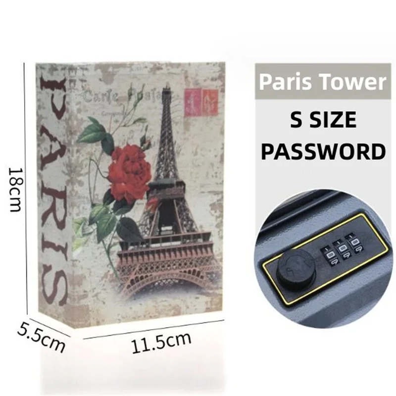 Feature:1. 100% Brand new and high quality2. It looks like a dictionary, actually it is a cash box3. The "dictionary" has added a sense of mystery in your bookcase!4. A place to store extra cash, jewelry, etc.5. Portable for Traveling.6. Diversion safes provide the perfect hiding place and allow you easy access to your valuables.7. These unique safes allow you to hide valuables inside commonhousehold products - one of the last places a thief would think to look.8. Fantastic deluxe book safe, sturdy metal construction, tough and robust tokeep money,jewellery or any other prize possession safe and secure discreetly9. Perfect for use in home or the office.Thick steel plateAnti-rust coating, will not rustPassword Lock Style: Simple password lock,No need for a keyKey Lock Style: Use Very easilyJust remember the 3-digit custom password(First password: 000)Specifications:Material: Metal ,steelDimension: 180 x115x55 (mm) (S)Color: Multiple fashionable and classic patternsNet Weight: 500gPassword Lock Use Step:1. First password: 000Make sure the box is open when you change your passwordThe knob needs to be rotated to the bottom, and the password wheel can be rotated.2. Press button A to pull to position B.3. Then dial the password you want.4. Press button B to pull back to position APassword modification completedYou can use your new password