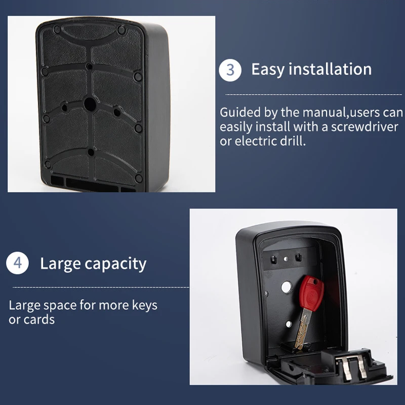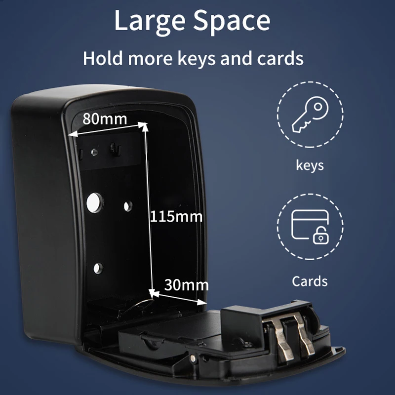 3. Large Internal Cavity and Removable Key Hook: The key lock box is design for prevents jamming, even when holding multiple key, like car key and house key